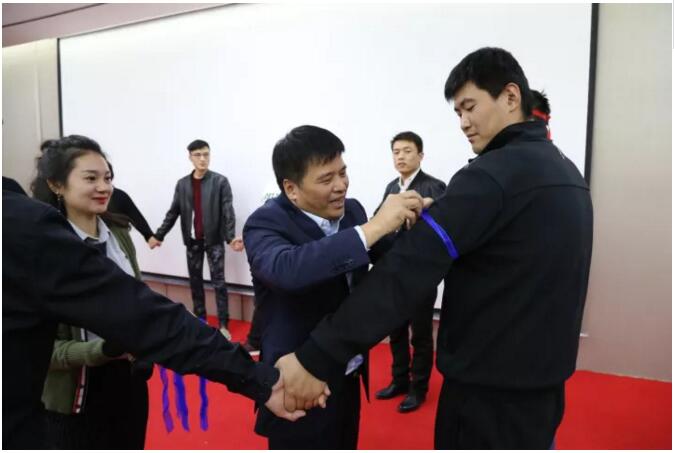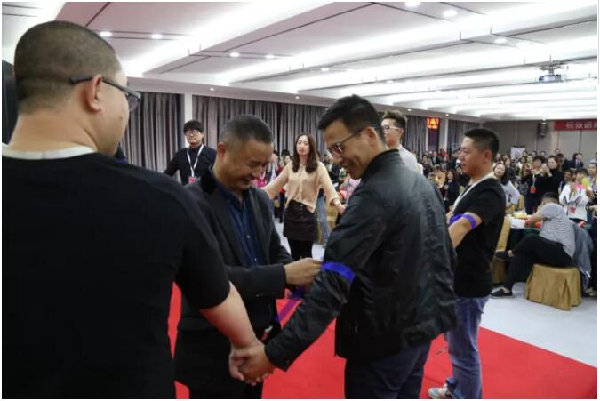 在晚會上,郭總及戴總親自為各個小組的隊長們綁上藍絲帶,藍絲帶意味著大家正式從商學院畢業,是辛勤汗水與獲得成功的象征。