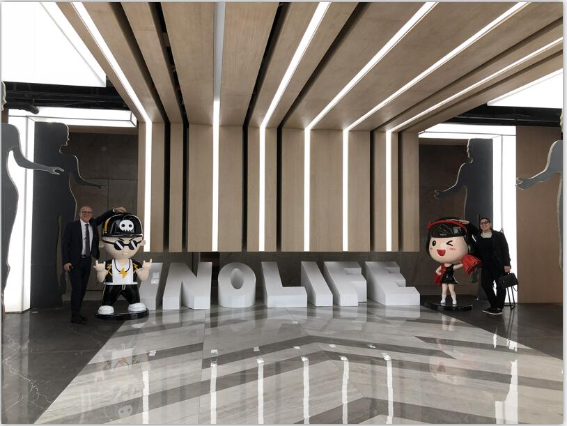 在參觀過程中,Maurizio先(xian)生(sheng)對依諾展廳(ting)的(de)(de)(de)裝修風格贊不絕口,看到(dao)他(ta)們設(she)計開發的(de)(de)(de)產品在依諾展廳(ting)呈現出如(ru)此多樣化(hua)的(de)(de)(de)展示感到(dao)非常驚喜(xi)。而最(zui)令他(ta)意想不到(dao)的(de)(de)(de)是(shi)擺放(fang)在展廳(ting)內的(de)(de)(de)原創IP公仔,俏皮的(de)(de)(de)形象(xiang)、絢麗的(de)(de)(de)色彩,恰到(dao)好處地與依諾展廳(ting)融為(wei)一(yi)體(ti),Maurizio先(xian)生(sheng)非常喜(xi)歡(huan),說一(yi)定要(yao)合(he)影(ying)留念。