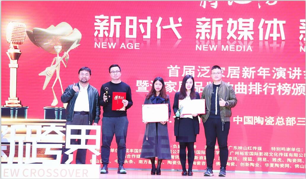△社會化(hua)病毒營銷專家肖劍(jian)(左(zuo)1)、依諾(nuo)瓷磚領獎代表(biao)(中)、“西(xi)少爺”肉(rou)夾饃創始人(ren)袁(yuan)澤陸(右1)