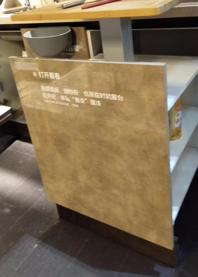 ▲某品牌在櫥柜門板、臺面、桌面的應用展示