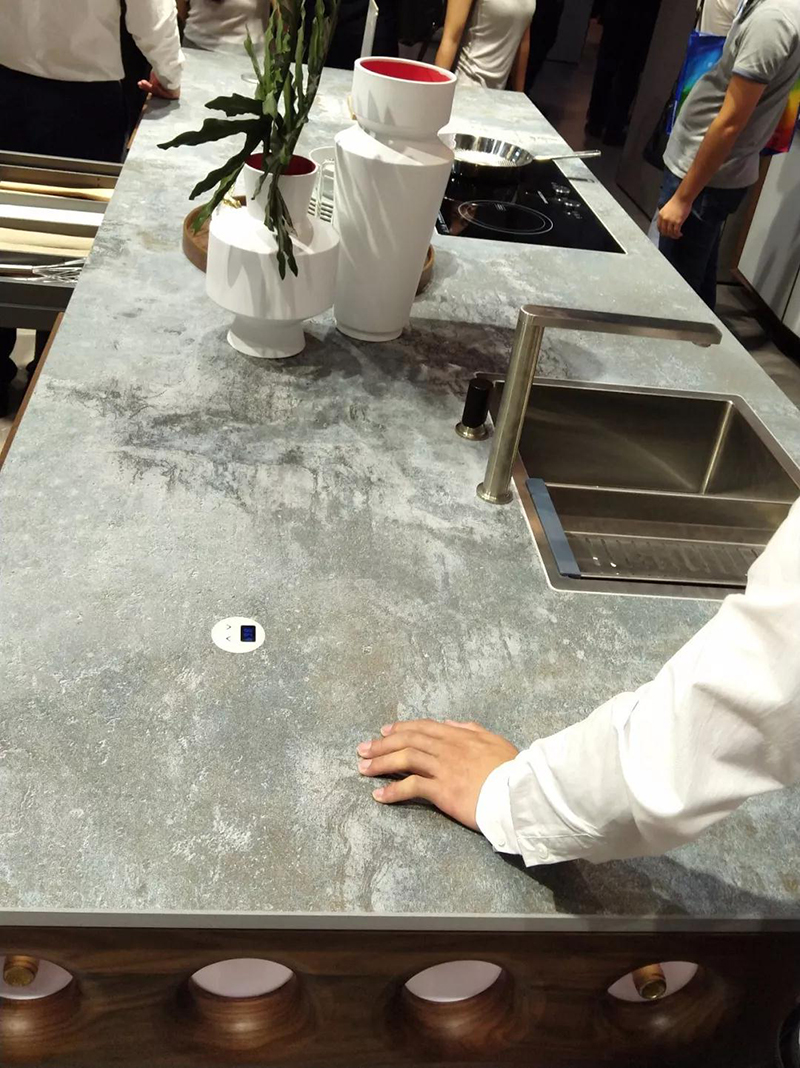 ▲某品牌展(zhan)示的由大板制作的臺面