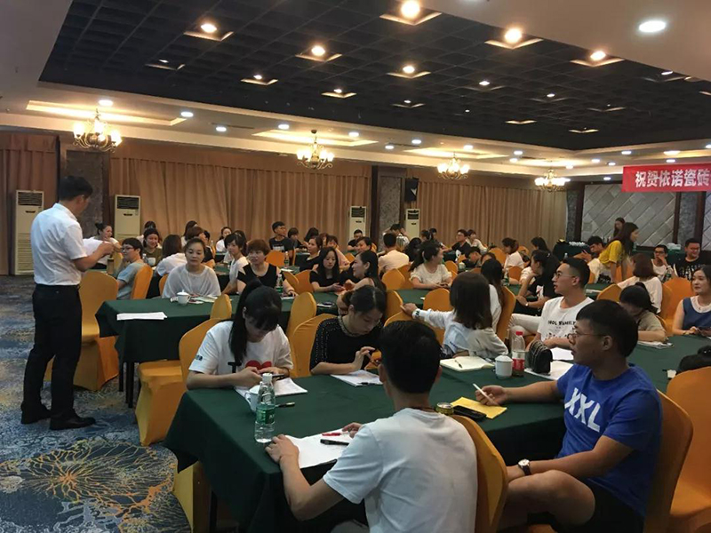 在為期兩天的培訓課程里,呂亮老師主要針對店面服務中的:售前售中售后,三個部分進行重點講解。然后在晚上對大家進行依諾瓷磚品牌基礎知識統一考試,通過考試讓大家加深對依諾瓷磚品(pin)牌及產品(pin)知識等方面的認知,同時讓大家意識到自己在哪(na)方面還(huan)有不足,需(xu)要努(nu)力去(qu)強化。