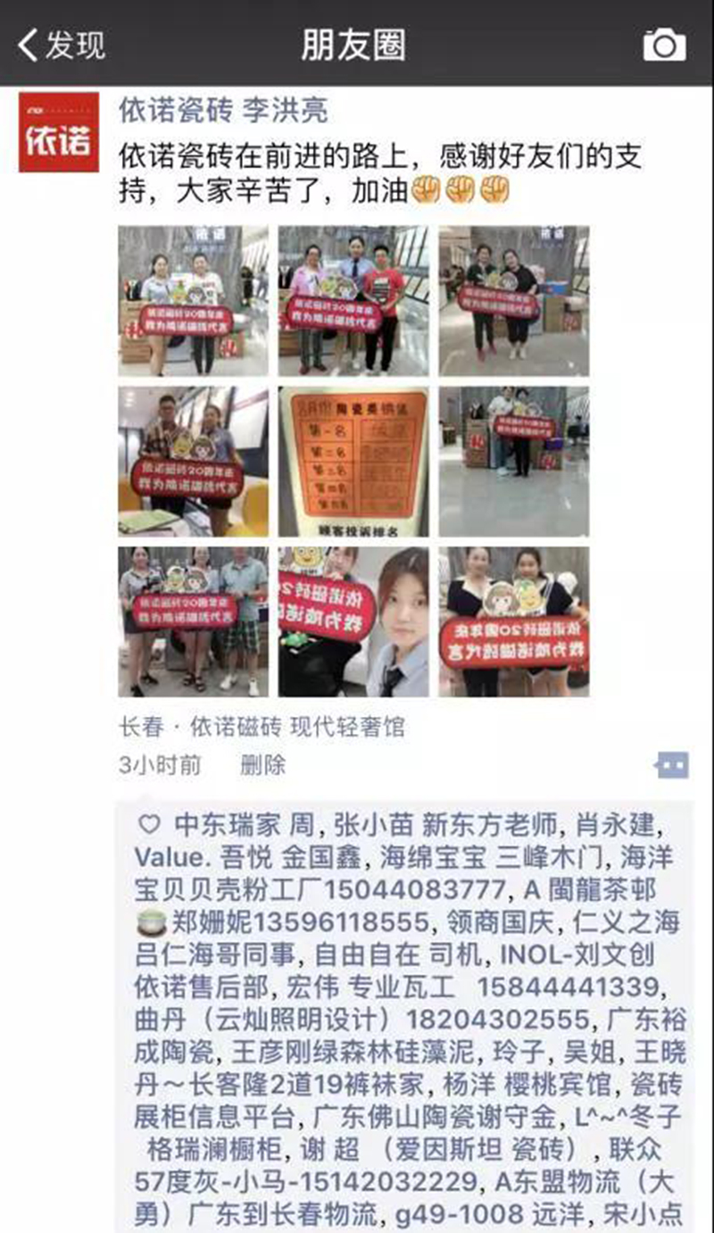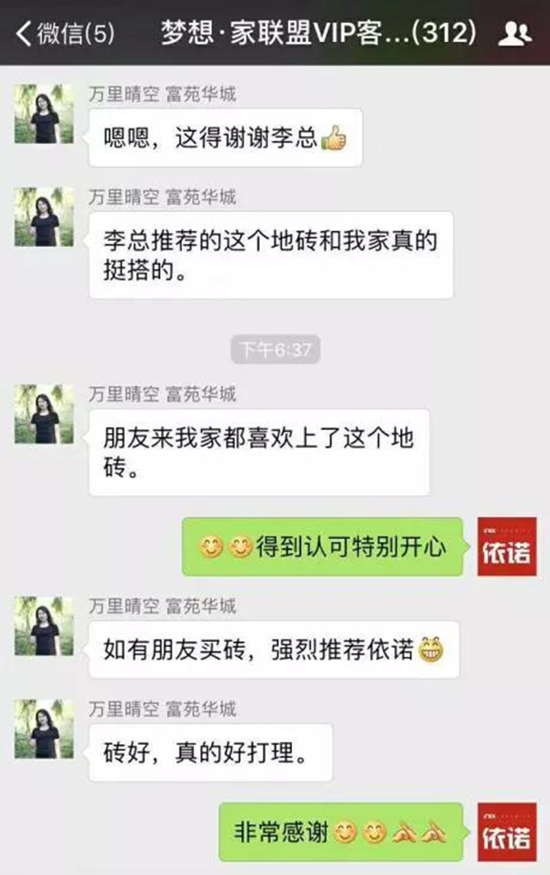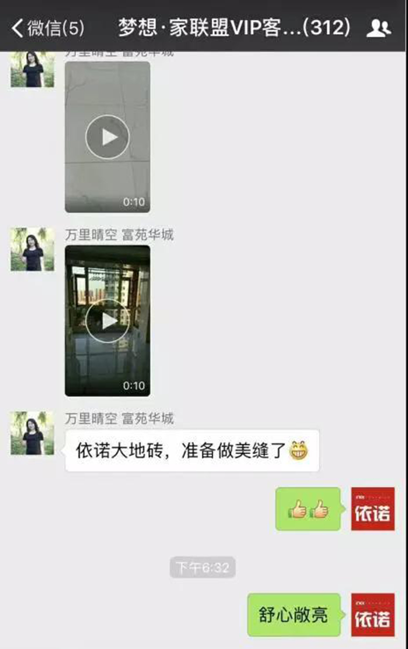 ▲客戶紛紛為依諾瓷(ci)磚(zhuan)代(dai)言(yan)