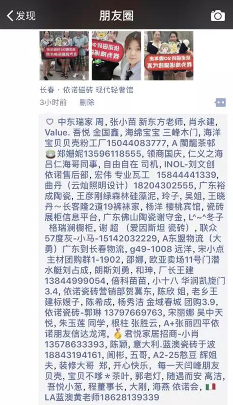 長(chang)春歐亞賣場“依(yi)諾(nuo)瓷磚(zhuan)專(zhuan)賣店”,自(zi)開業以來每(mei)日客(ke)戶絡繹不絕(jue),除店面自(zi)然客(ke)流(liu),更得益于(yu)長(chang)春依(yi)諾(nuo)負責人李總的“流(liu)量池(chi)思維”和通過社群營銷等新渠道不斷向店面引流(liu),輸送(song)客(ke)源。