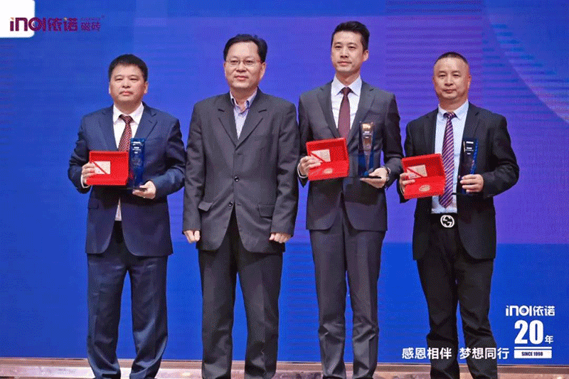▲左起:依諾(nuo)企(qi)(qi)業(ye)總經(jing)理(li)郭萬龍;依諾(nuo)制(zhi)造中心采(cai)購部總監戴富順;依諾(nuo)企(qi)(qi)業(ye)董事長(chang)戴進(jin)財;依諾(nuo)制(zhi)造中心儲運部總監 范柏(bo)成(cheng);依諾(nuo)企(qi)(qi)業(ye)營銷總經(jing)理(li)田慶忠; 依(yi)諾瓷磚品牌(pai)20周年(nian) | 頒獎典禮回顧 ▼ 【功勛獎】 ▲左(zuo)1:依諾企業總(zong)經理郭萬龍(long) 發表獲感言 “20年,你看到依諾的成長(chang),而我更在乎有你們(men)的陪伴…” ▼ 【最佳貢獻獎】