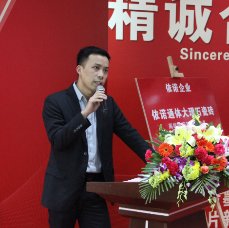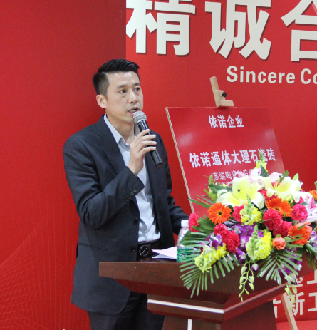 依諾企業,十八年如一日,始終只專注于瓷磚,特別是工廠升級之后,更確立“高端陶瓷制造領跑者”的企業戰略,立志將瓷磚生產做到極致。交流會上,依諾企業制造中心副總經理吳至權從人、機、物、法、環五個方面就工廠的精細化生產管理體系展開解說;依諾企業制造中心副總經理胡偉豪給大家講解依諾通體大理石的推出的背景和產品優勢、特點;依諾企業制造中心總經理李錦國則從產品、設備、工藝等方面做詳細的規劃,同時從標準化流程、標準化生產、標準化質量,標準化服務方面等進行全面詮釋,并重點在產品質量方面給在座的品牌商打了一支強心劑。最后,依諾企業營銷中心總經理田慶忠表示:依諾企業將以“我的工廠,就是你的工廠”為服務標準和目標來與品牌商合作,根據合作伙伴需求,提供私人定制服務,共同實現雙贏。