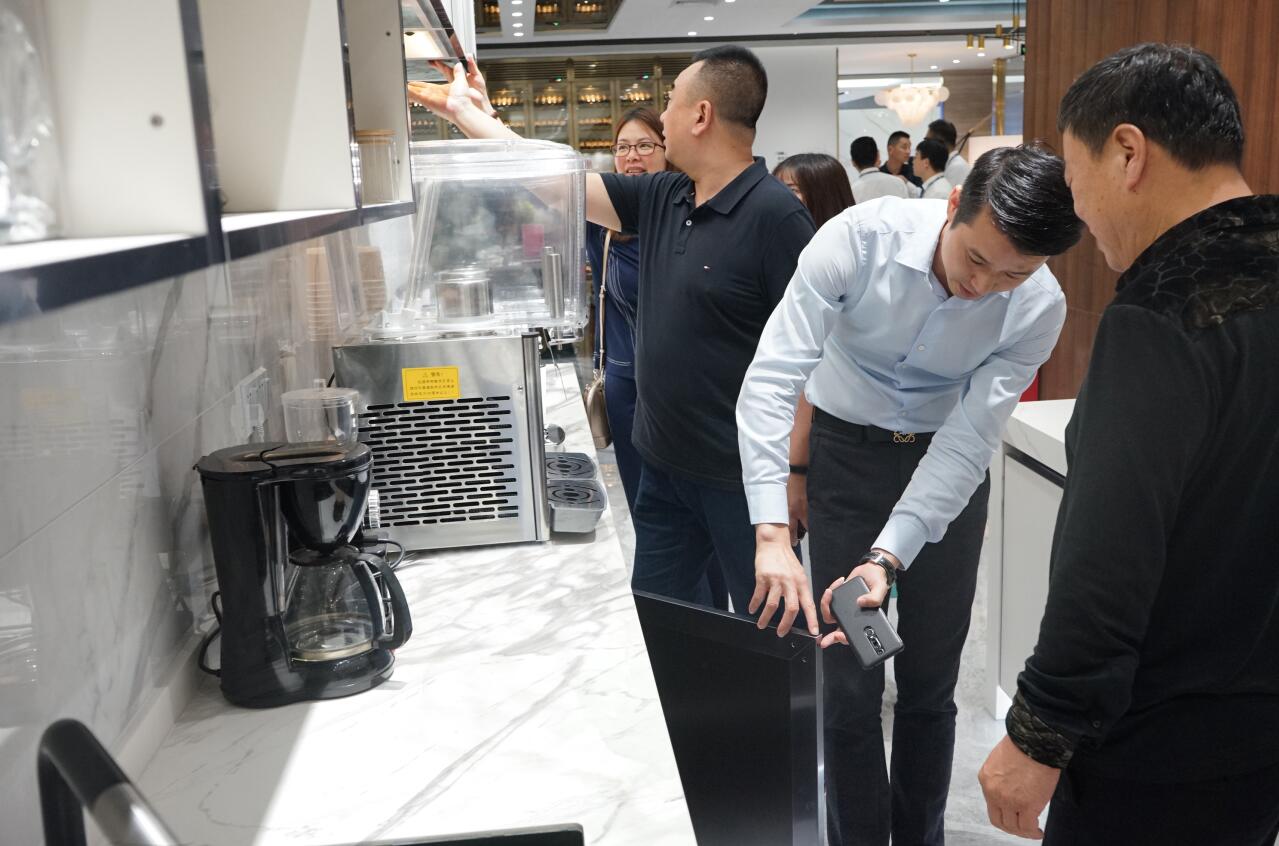 田(tian)總(zong)給到場的(de)嘉(jia)賓介紹了依(yi)(yi)諾品(pin)牌(pai)及主推產品(pin)【LINK】系(xi)列連(lian)紋大板(ban)和(he)【高(gao)級巖(yan)板(ban)定制】產品(pin)的(de)優勢,他表示依(yi)(yi)諾【高(gao)級巖(yan)板(ban)定制】將(jiang)材質和(he)設(she)計(ji)融(rong)為一體,美觀(guan)與實(shi)用并存,實(shi)現了1+1>2的(de)可能。依(yi)(yi)諾總(zong)部展廳從產品(pin)到空間都(dou)讓各位(wei)嘉(jia)賓贊嘆(tan)不已。