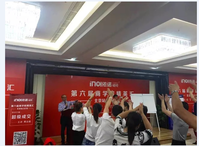 繼第五屆(jie)依(yi)諾(nuo)(nuo)商(shang)(shang)學(xue)院精(jing)英匯得(de)到廣大(da)經銷商(shang)(shang)的高(gao)度配合和認可后,為響應廣大(da)依(yi)諾(nuo)(nuo)人(ren)的學(xue)習成長需(xu)求,依(yi)諾(nuo)(nuo)磁磚總部于(yu)5月12日(ri)-13日(ri)在北(bei)京舉辦第六(liu)屆(jie)商(shang)(shang)學(xue)院精(jing)英匯,全國(guo)各(ge)地(di)100多名老板(ban),店長和銷售精(jing)英參(can)加了本次(ci)培訓。