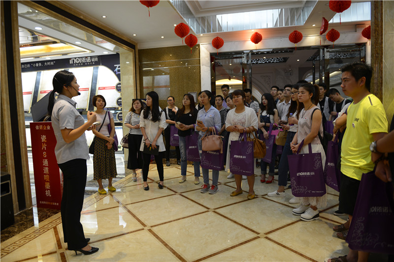 5月17日,深圳樂峰精裝設計師一行蒞臨依諾磁磚佛山總部和肇慶生產制造中心參觀交流。通過實地觀察1:1產品展示空間及高端的的生產設備,了解為何越來越多的高端工程項目和設計師選用依諾磁磚,并深入感受依諾磁磚帶來的高品質家居生活體驗和品牌實力。