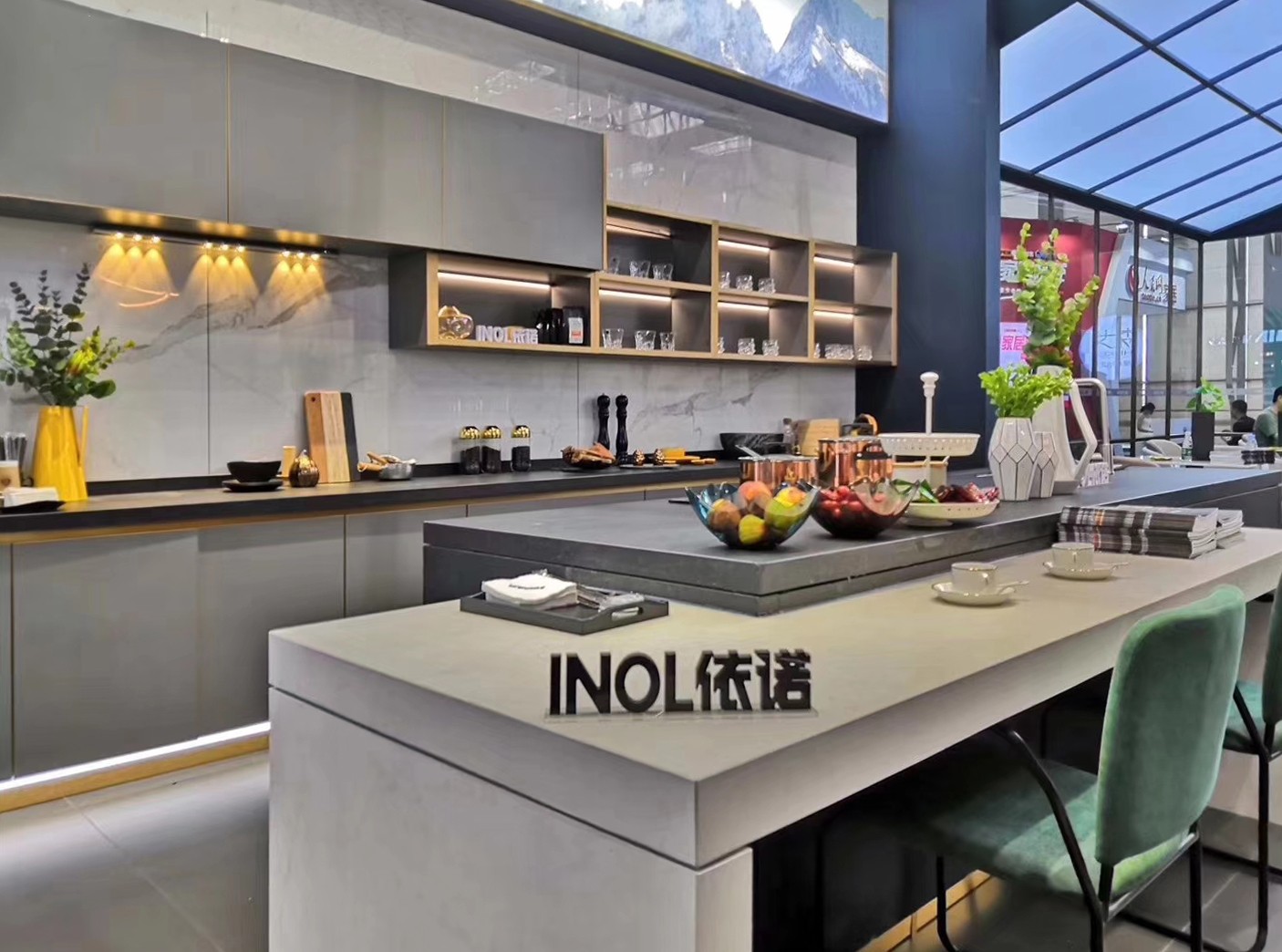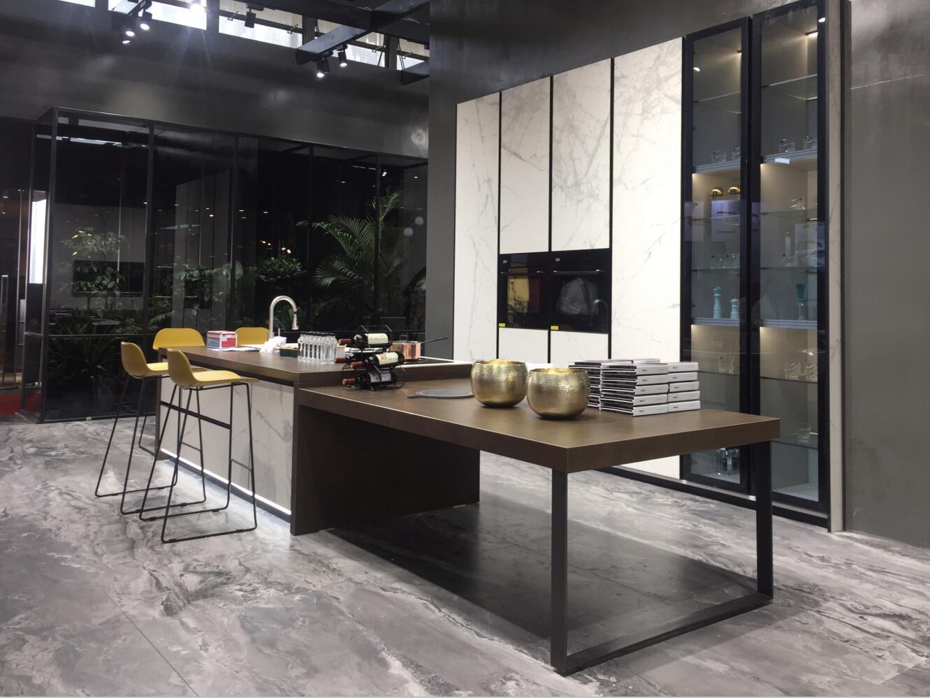 依(yi)(yi)諾瓷(ci)磚(zhuan)【高級巖(yan)板(ban)定(ding)制】產品,具有防(fang)火耐高溫,零(ling)滲透不(bu)(bu)吸污,抗沖(chong)擊耐刮磨的(de)優良特性,彌補過去定(ding)制類(lei)材料上(shang)的(de)諸多不(bu)(bu)足,能廣泛應(ying)用于柜(ju)體、門板(ban)、臺面等家居(ju)定(ding)制。依(yi)(yi)諾瓷(ci)磚(zhuan)展(zhan)(zhan)位內每一處細節呈現(xian)出極(ji)致質感,無不(bu)(bu)展(zhan)(zhan)示了(le)依(yi)(yi)諾瓷(ci)磚(zhuan)緊(jin)跟國際(ji)的(de)工藝水平,能夠滿足消(xiao)費者(zhe)對高端定(ding)制的(de)需求,讓前來參觀商客贊不(bu)(bu)絕口。
