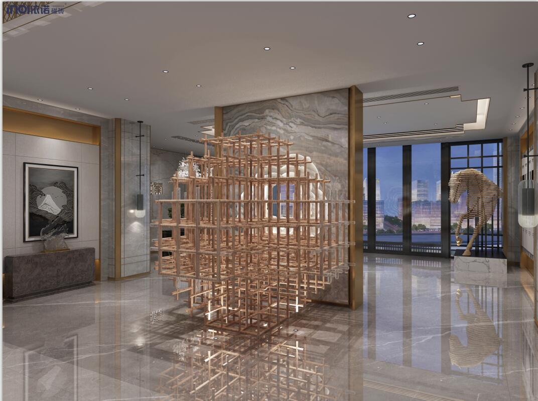 在本案中,設計師以“山、水、云、石”為引,以現代材料營造物境,以創意裝置烘托情境,營造蘊藏藝術記憶點的新中式空間,高貴的東方美學,輕奢優雅的品味,正是現代都市人的心之所往。
