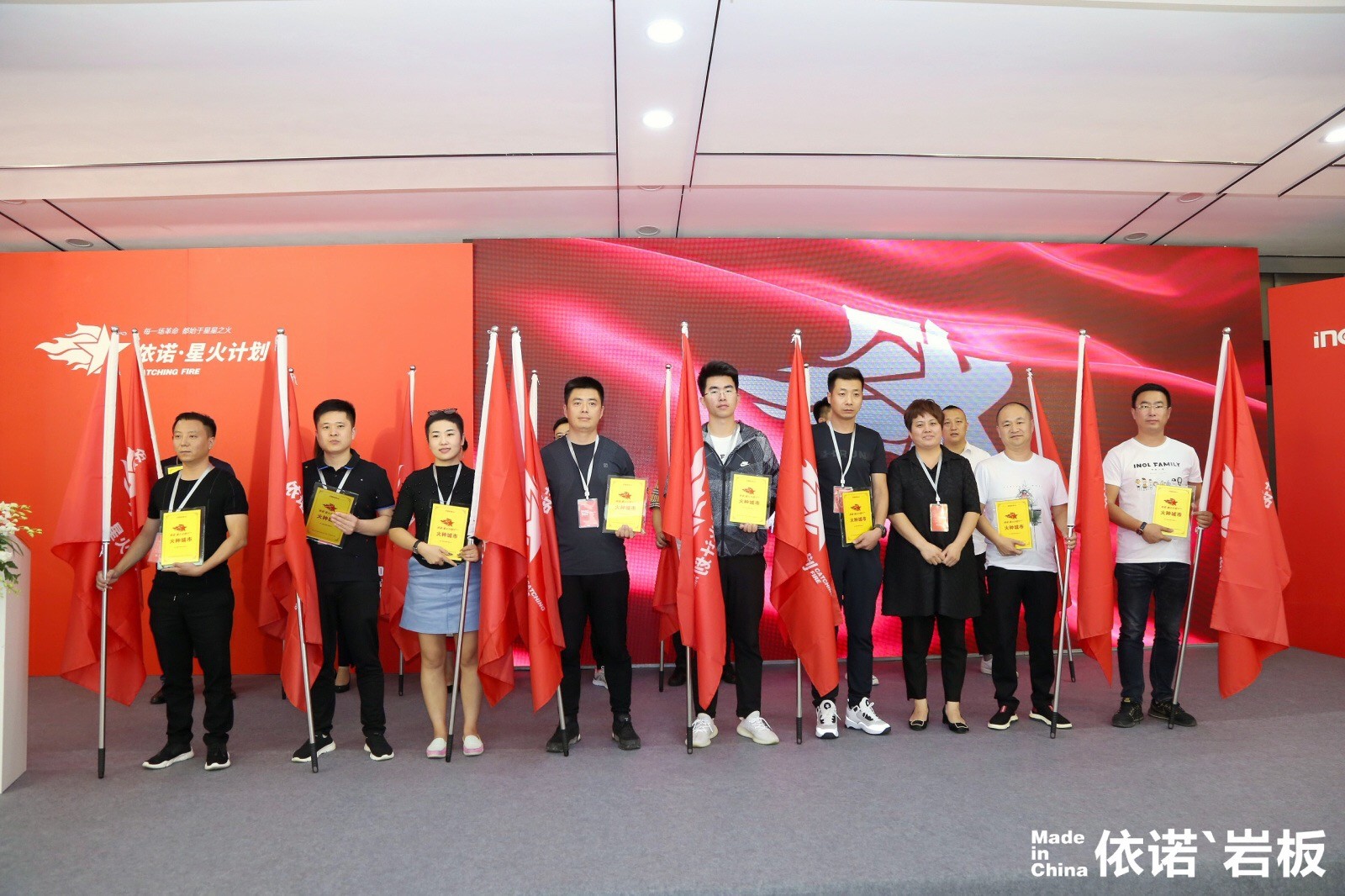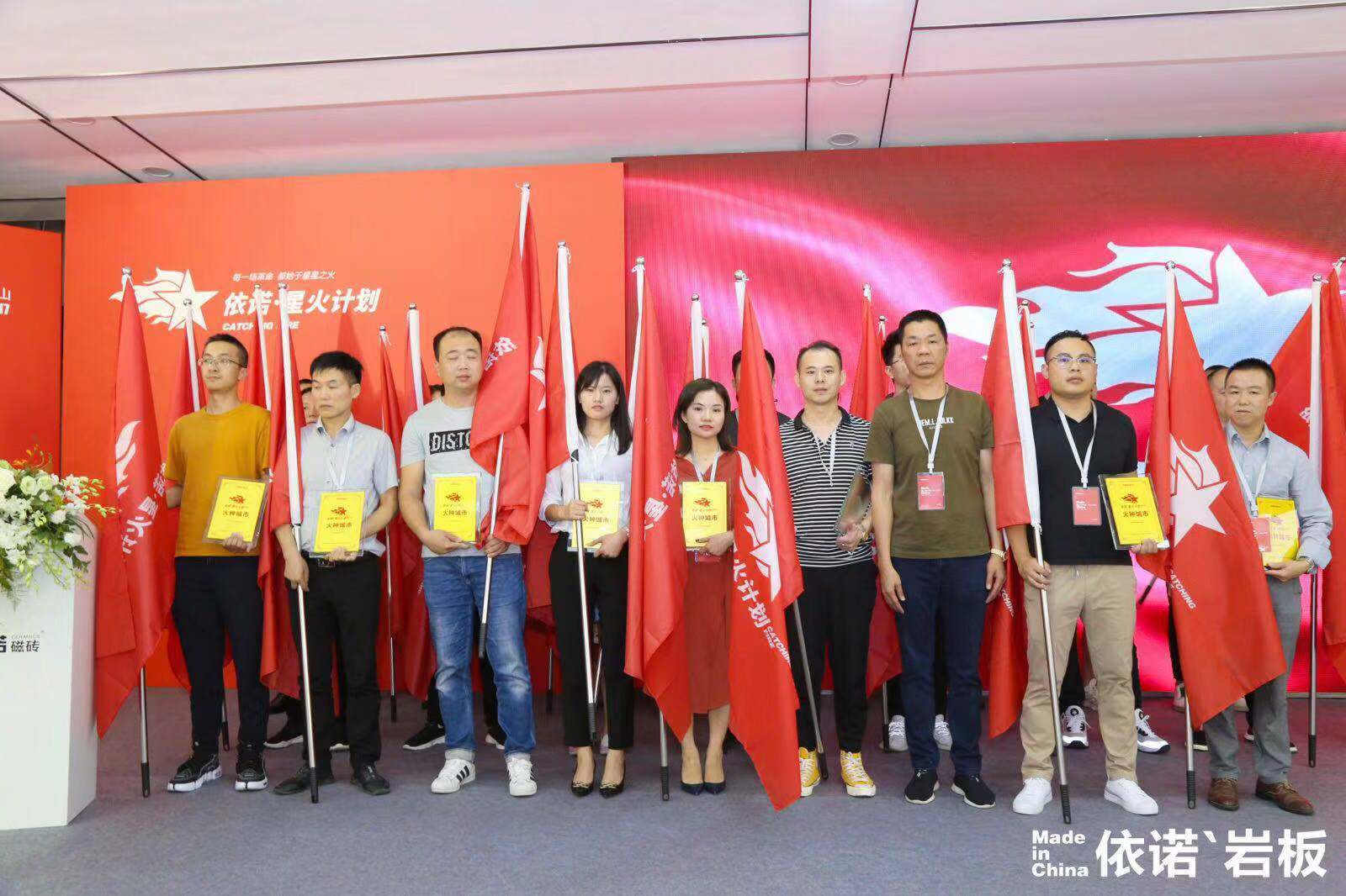隨(sui)后,由(you)【依(yi)(yi)諾(nuo)瓷磚·星(xing)火計(ji)劃】首批火種經銷商客戶(hu)(hu):北京依(yi)(yi)諾(nuo)總經理(li)(li)于(yu)記、鄭州(zhou)依(yi)(yi)諾(nuo)總經理(li)(li)張玉(yu)霞、銀(yin)川(chuan)依(yi)(yi)諾(nuo)董(dong)事(shi)長洪鳳鳴、保(bao)定依(yi)(yi)諾(nuo)總經理(li)(li)李星(xing)、蘇(su)州(zhou)依(yi)(yi)諾(nuo)總經理(li)(li)蔣本龍、義烏依(yi)(yi)諾(nuo)總經理(li)(li)蔡培強(qiang),為新一批客戶(hu)(hu)授旗并頒發牌匾(bian),象征(zheng)項(xiang)目正式(shi)邁(mai)進全新征(zheng)程。