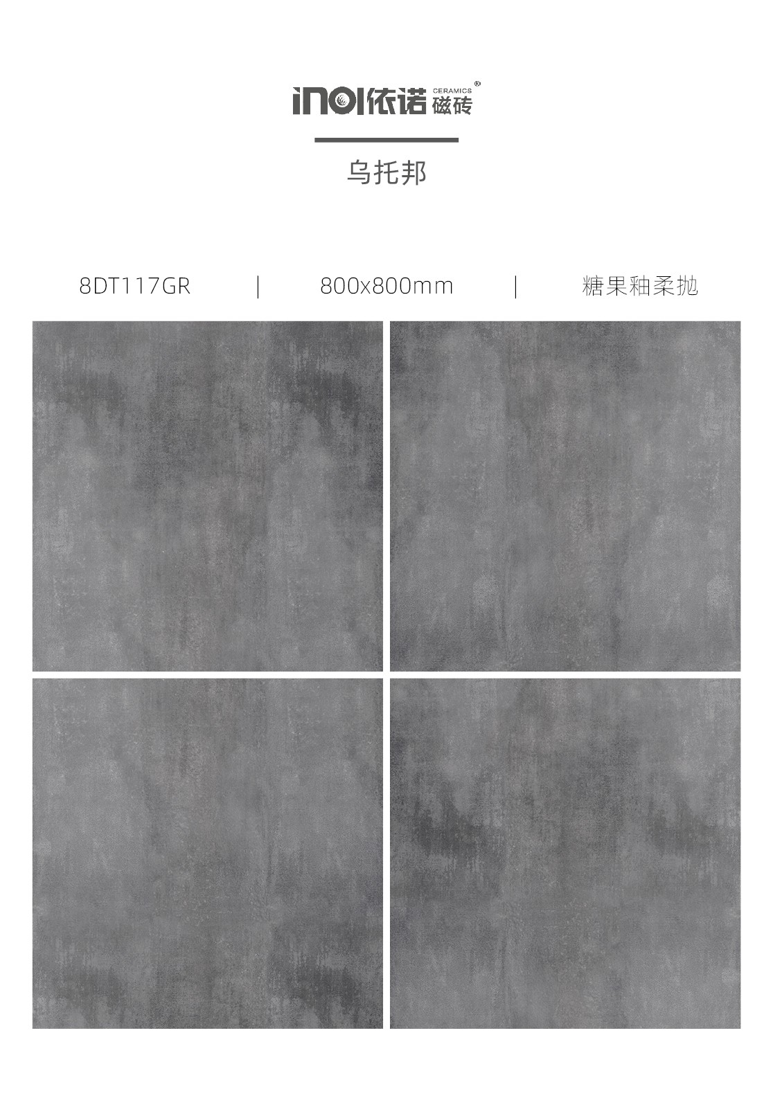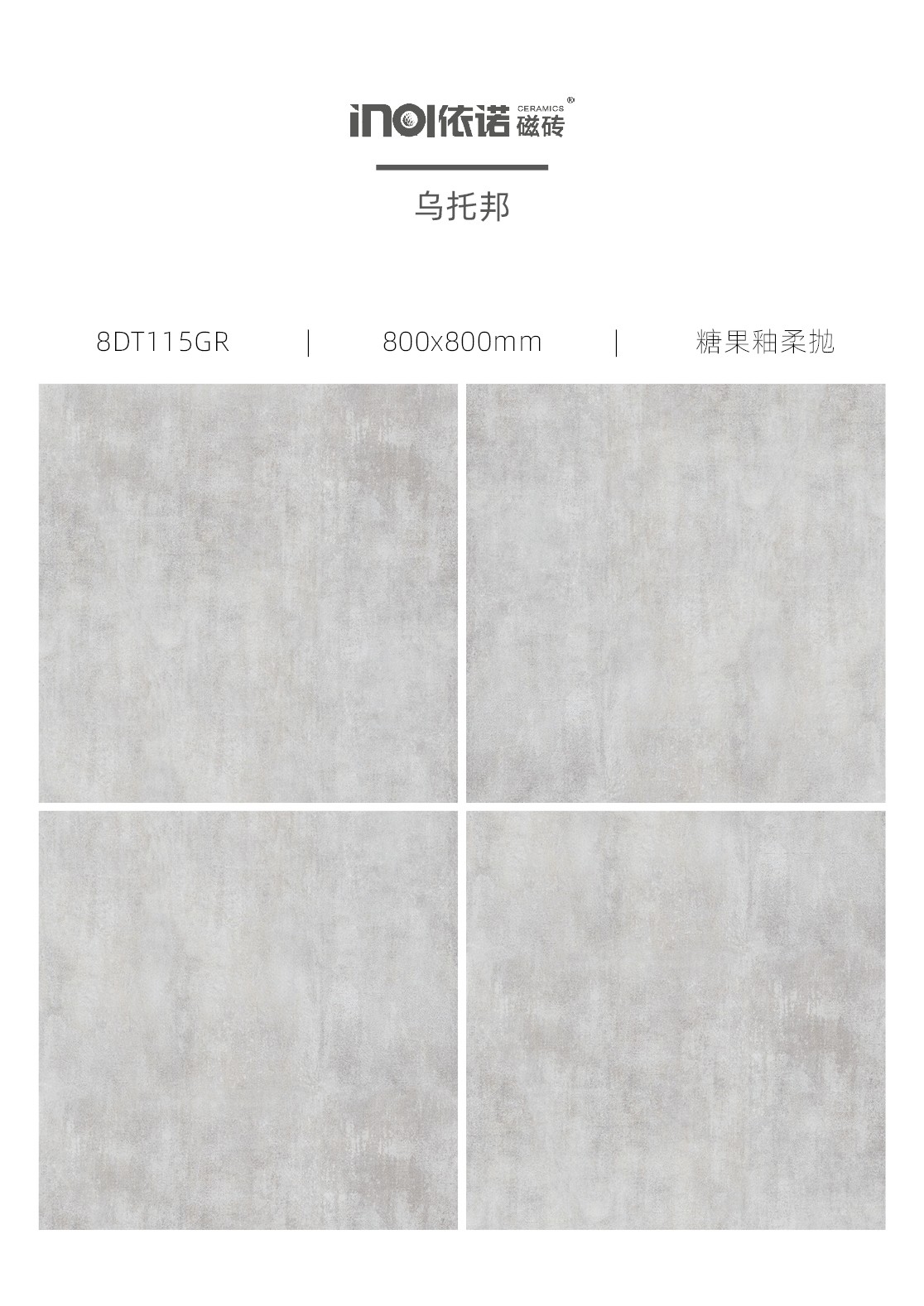 安藤忠雄的作品雖用堅實厚硬的混凝土建造,但卻提供了一種簡潔與輕盈的視覺效果。為了將這種感覺更好地還原,依諾瓷磚品牌產品團隊在研發現代仿古磚「烏托邦」系列時使用了糖果釉柔拋工藝,使原本厚重、表面粗糙的混凝土紋理,以一種綿密、潤澤的質感來呈現。