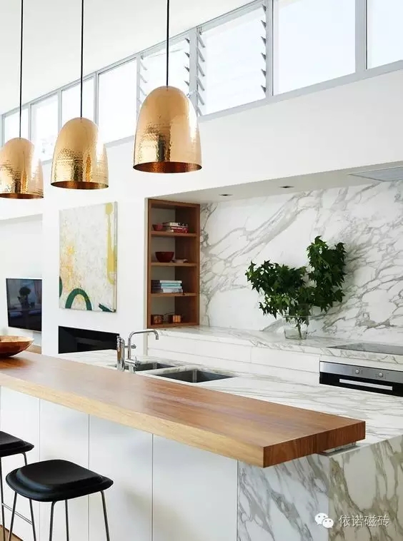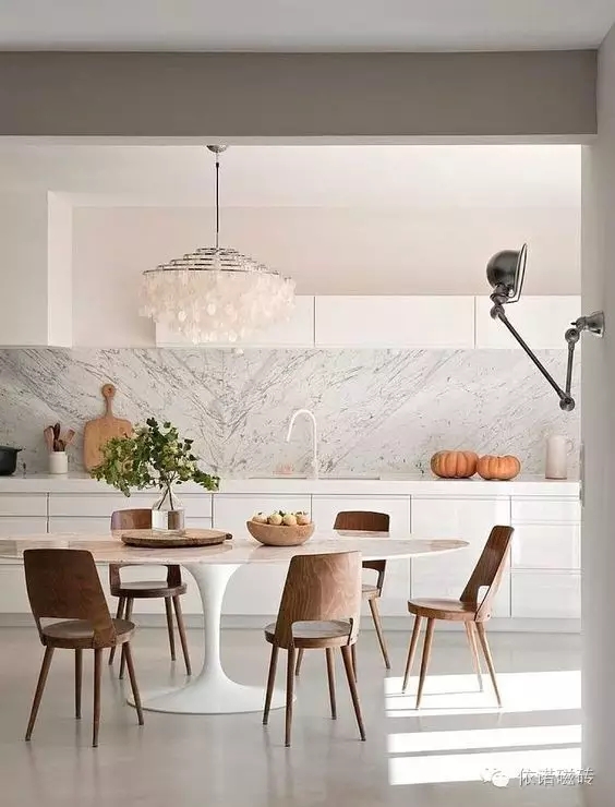 這一個使用了Carrara的(de)空間,搭配(pei)原木色的(de)家具和金屬的(de)燈具,這個感覺,我想(xiang)(xiang)到的(de)是(shi)瑞典室內設計(ji)師 MarieOlsen Nylander,獨立、隨性、有(you)思(si)想(xiang)(xiang)、不做(zuo)作(zuo)的(de)時(shi)髦,就是(shi)這樣。