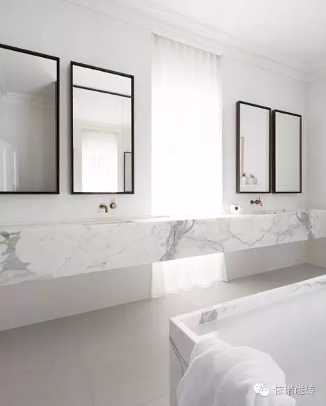 最后一張,大(da)(da)理石元素的(de)(de)洗(xi)手臺和浴缸,幾個黑色的(de)(de)鏡框畫龍點睛,黑白配(pei)(pei)是Carrara最經典(dian)也(ye)是最保(bao)險(xian)的(de)(de)做法,如果你(ni)實在不相信自己的(de)(de)軟裝功(gong)力(li),那么你(ni)就選黑白配(pei)(pei)一定(ding)不會(hui)錯,這個空間(jian),超(chao)哥想(xiang)到的(de)(de)是穿(chuan)Alexander Wang的(de)(de)那些(xie)女孩(hai)兒,一臉(lian)大(da)(da)寫的(de)(de)“不要靠近”。