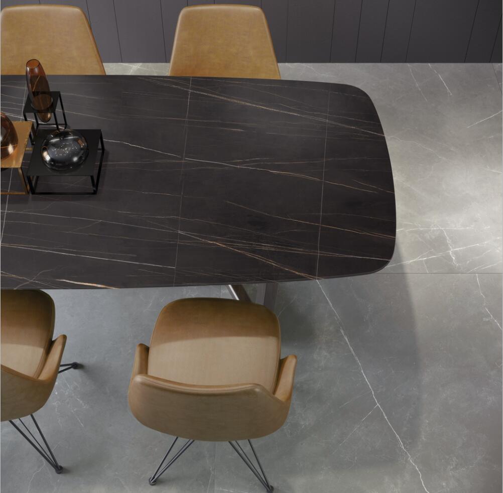 依諾國產巖板的規格主要為900*1800mm,專為定制餐桌、浴室柜、茶幾、電視柜量身打造的巖板。此規格出材率高,可大大減少工廠施工過程中的破損和浪費,降低成本。我們花普通的價錢,買到高性價比的產品。這也是很多消費者可能買的是巖板臺面的餐桌,但卻不知道他是巖板卻以為是大理石的原因。那么我們怎么區分家里是巖板餐桌還是大理石餐桌呢?很重要的一點是從厚度來區分,巖板比大理石瓷磚薄,別以為巖板薄就會更容易碎,恰恰相反,巖板不僅薄,而且硬度很高,更加不易碎。