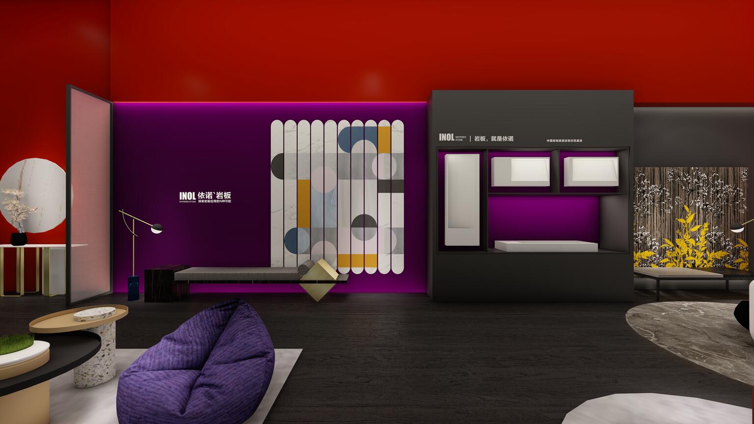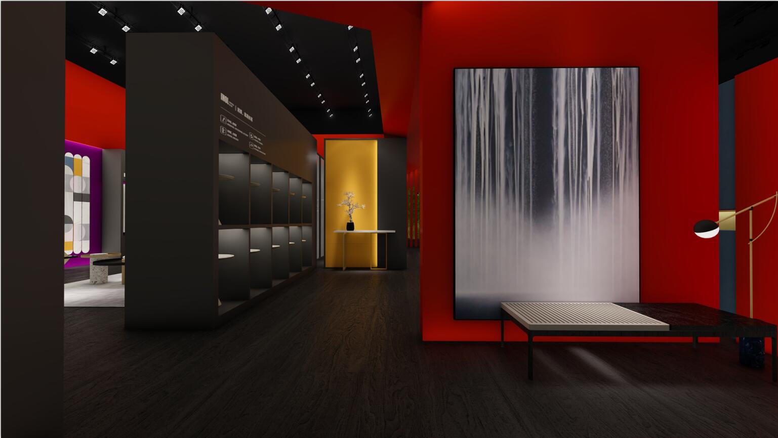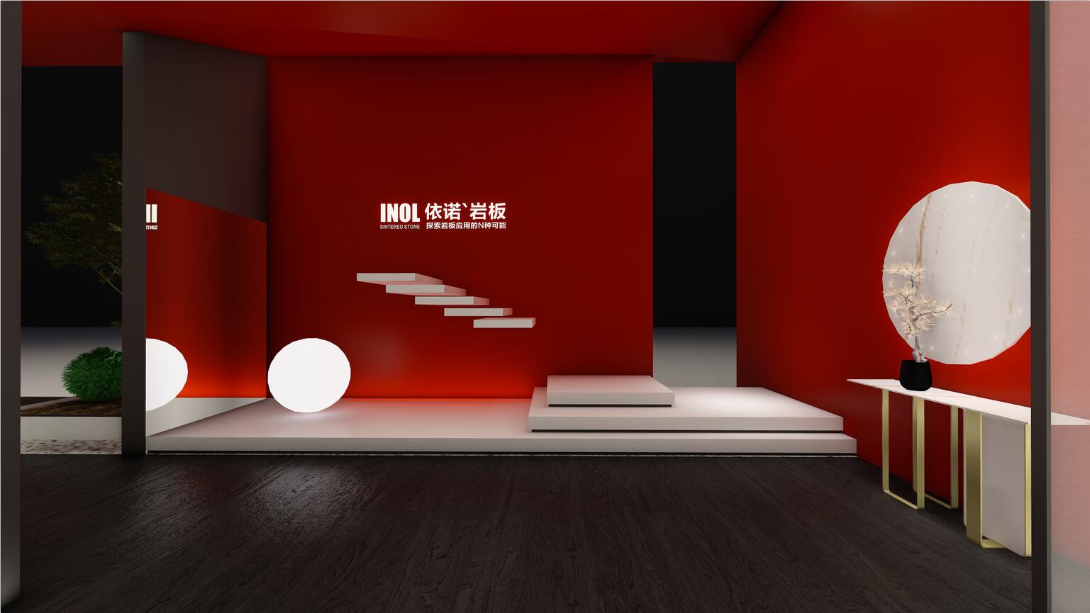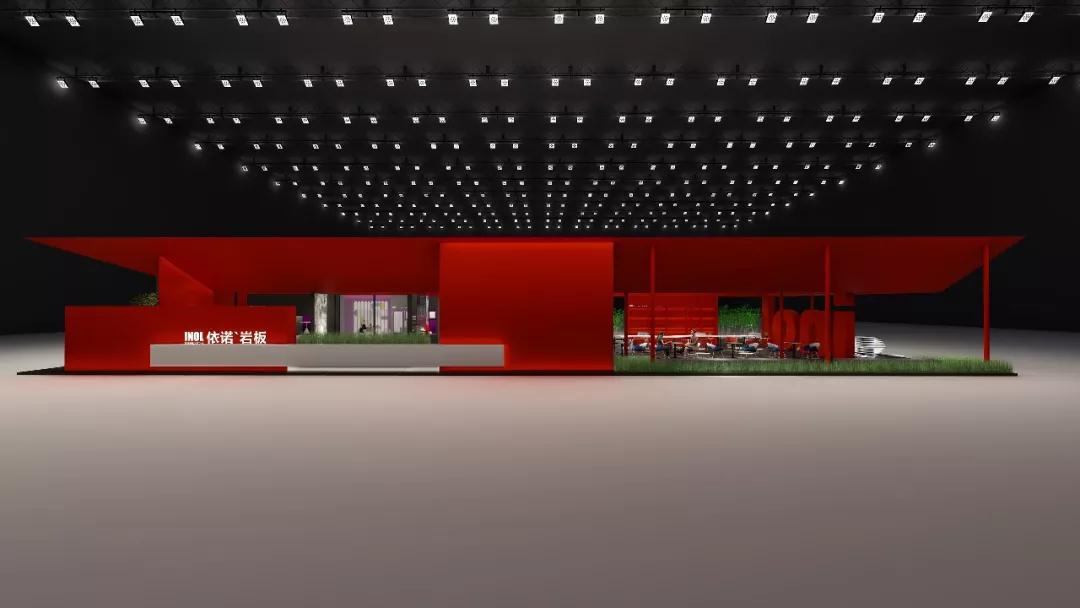 依諾瓷磚在本次廣州設計周上主推自主設計、研發與生產的高端巖板產品,因此設計師采用大膽的紅色作為主色調,來體現依諾巖板廠家「新國貨力量(liang)」的主題(ti)。