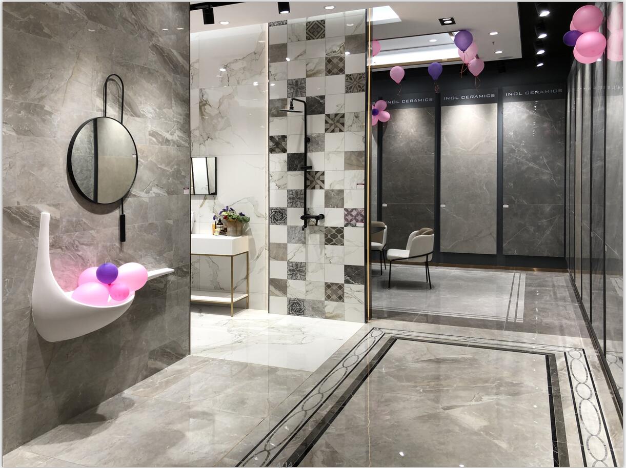 店內全采用依諾瓷磚自(zi)主(zhu)研發產品(pin),以灰(hui)、白、黑把(ba)持基調(diao),搭配(pei)簡約精(jing)致家具(ju)軟(ruan)裝(zhuang)、精(jing)心設(she)計的燈光,展現出高級的時(shi)尚態(tai)度和生(sheng)活品(pin)味(wei)。