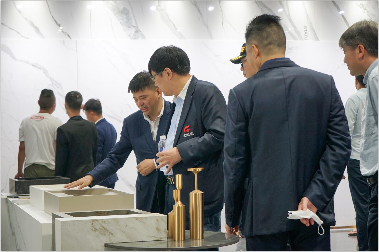 葉董事長一行認真考察了依諾的產品,對依諾瓷磚給予了高度的認可和評價:依諾的產品很有設計感,在物理性能和環保性能等方面的優勢非常突出,可以涉及的應用范圍非常廣泛,能讓空間的裝飾效果更加藝術化。他們還表示,依諾是中國制造和佛山瓷磚的代表,期待依諾瓷磚廠家未來能繼續引領行業創新,開發更多優質產品,滿足消費者多元化需求。
