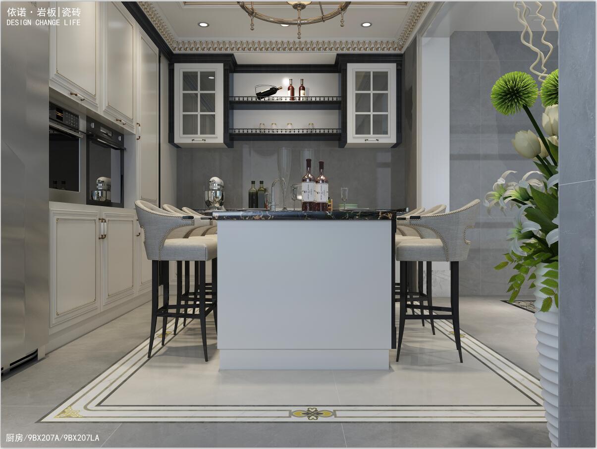 在該裝修案例中,設計師對現代人生活方式深度考量后,借助現代材料,削弱傳統法式的復雜形態,進行一場浪漫法蘭西的現代演繹。對于有法式情懷,而又不喜太繁瑣的業主來說,本案是不錯的一個參考案例,瓷磚選用依諾瓷磚品牌當下流行暢銷的瓷磚品類。