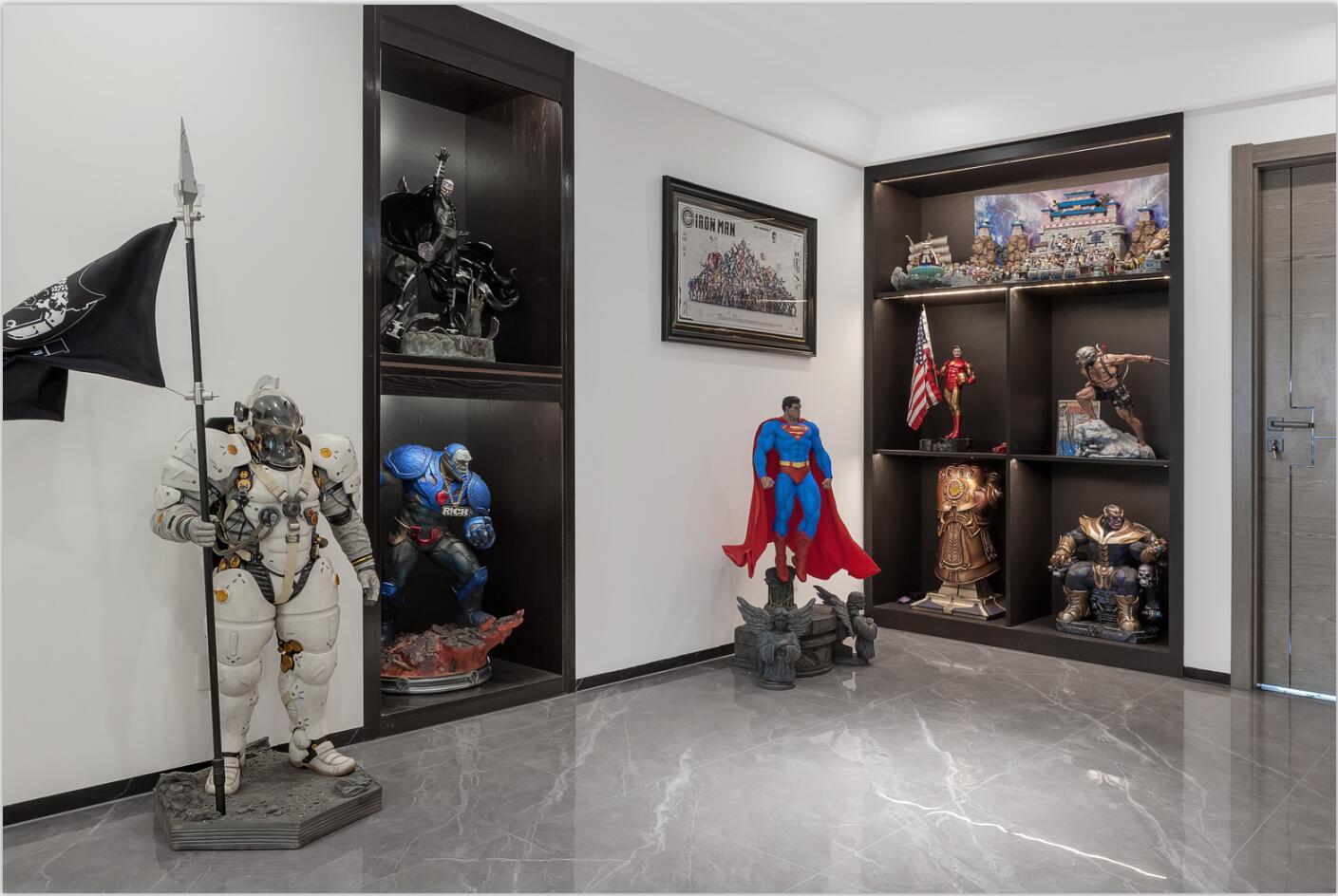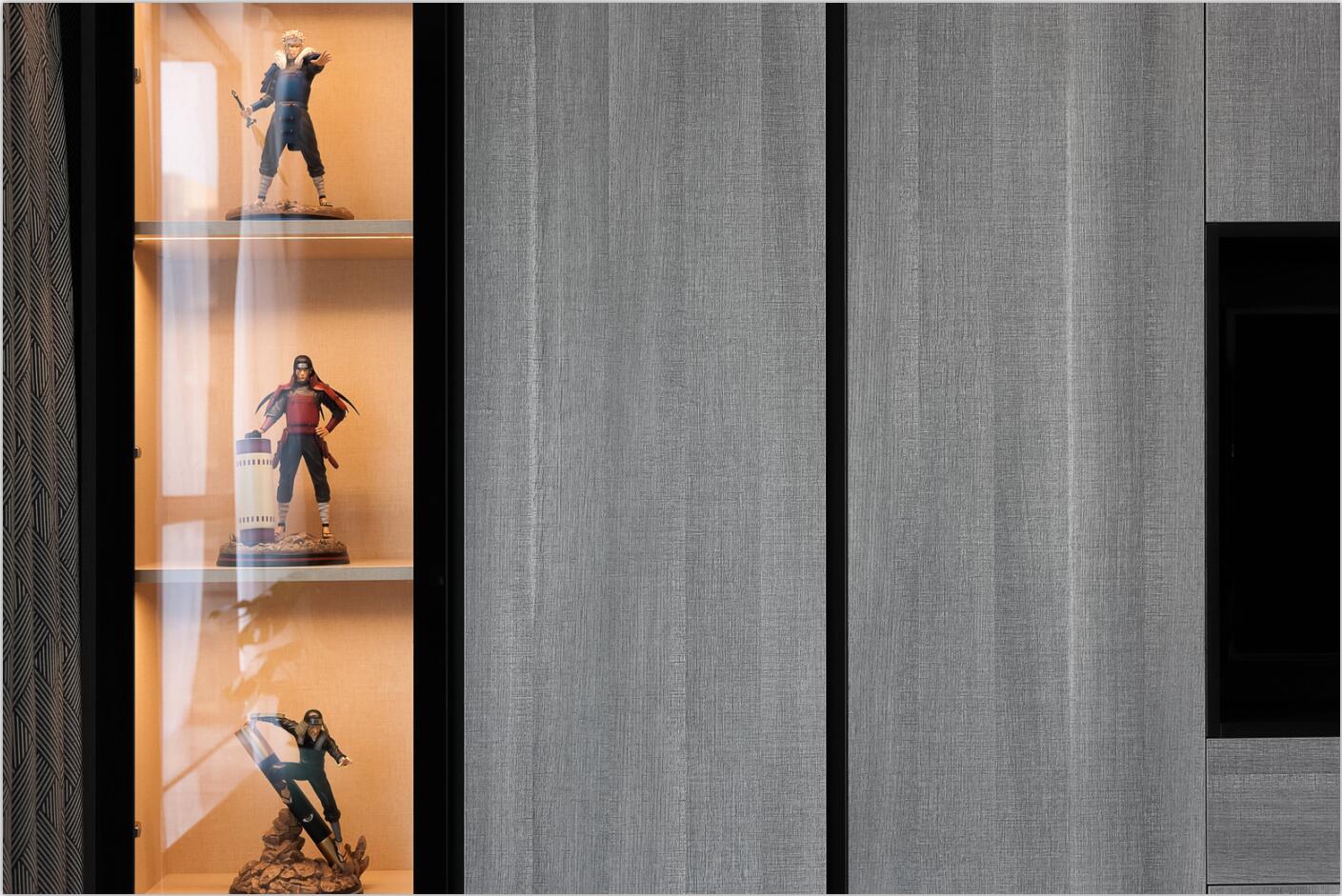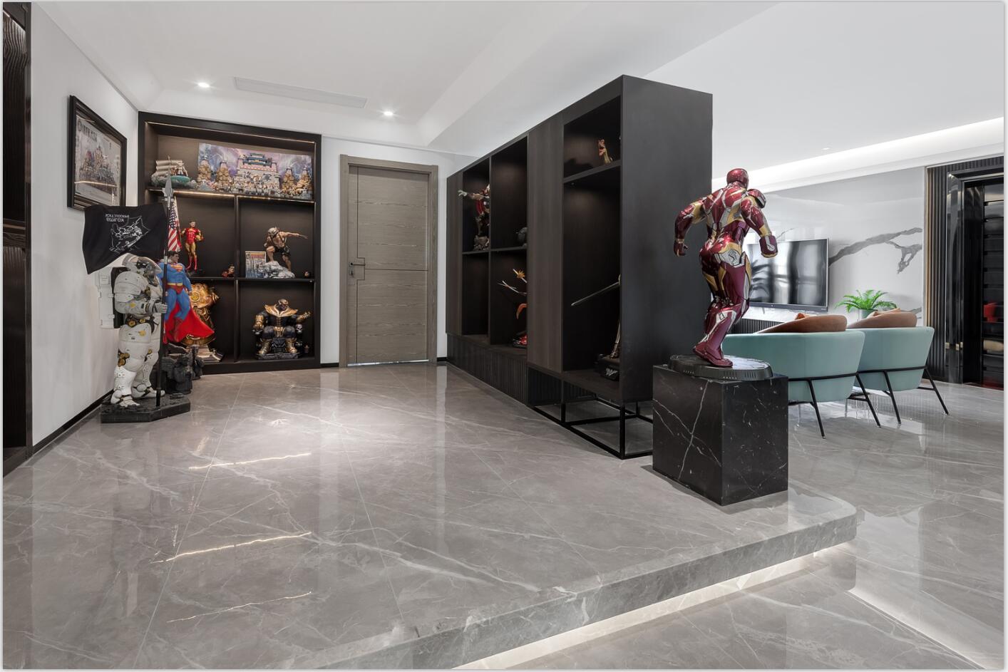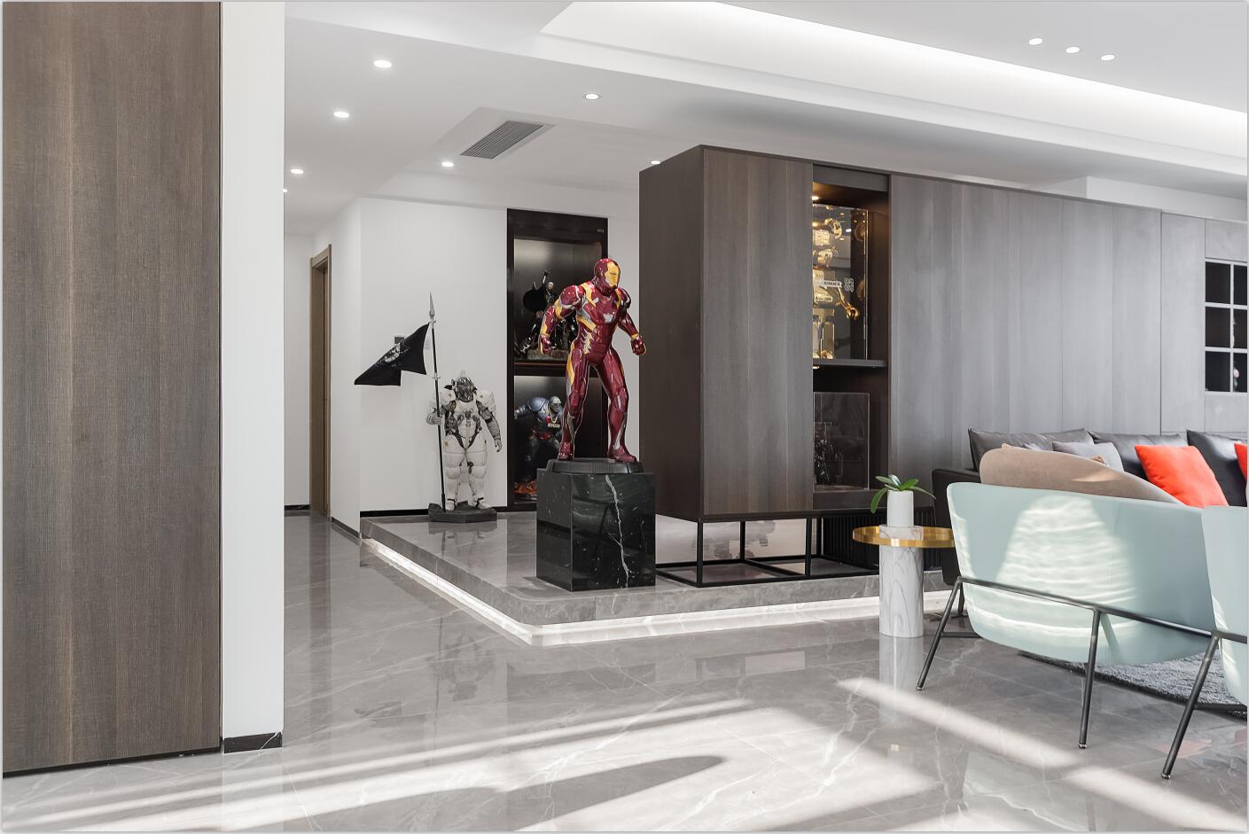 業主是一名帥氣的飛機師,同時是手辦發燒友,平時收藏了很多漫威、日本等人物場景模型精品。所以,他希望新房能為這些手辦模型提供一個展示的舞臺,既能將自己的愛好融入生活,又能保持空間的舒適感與實用度。