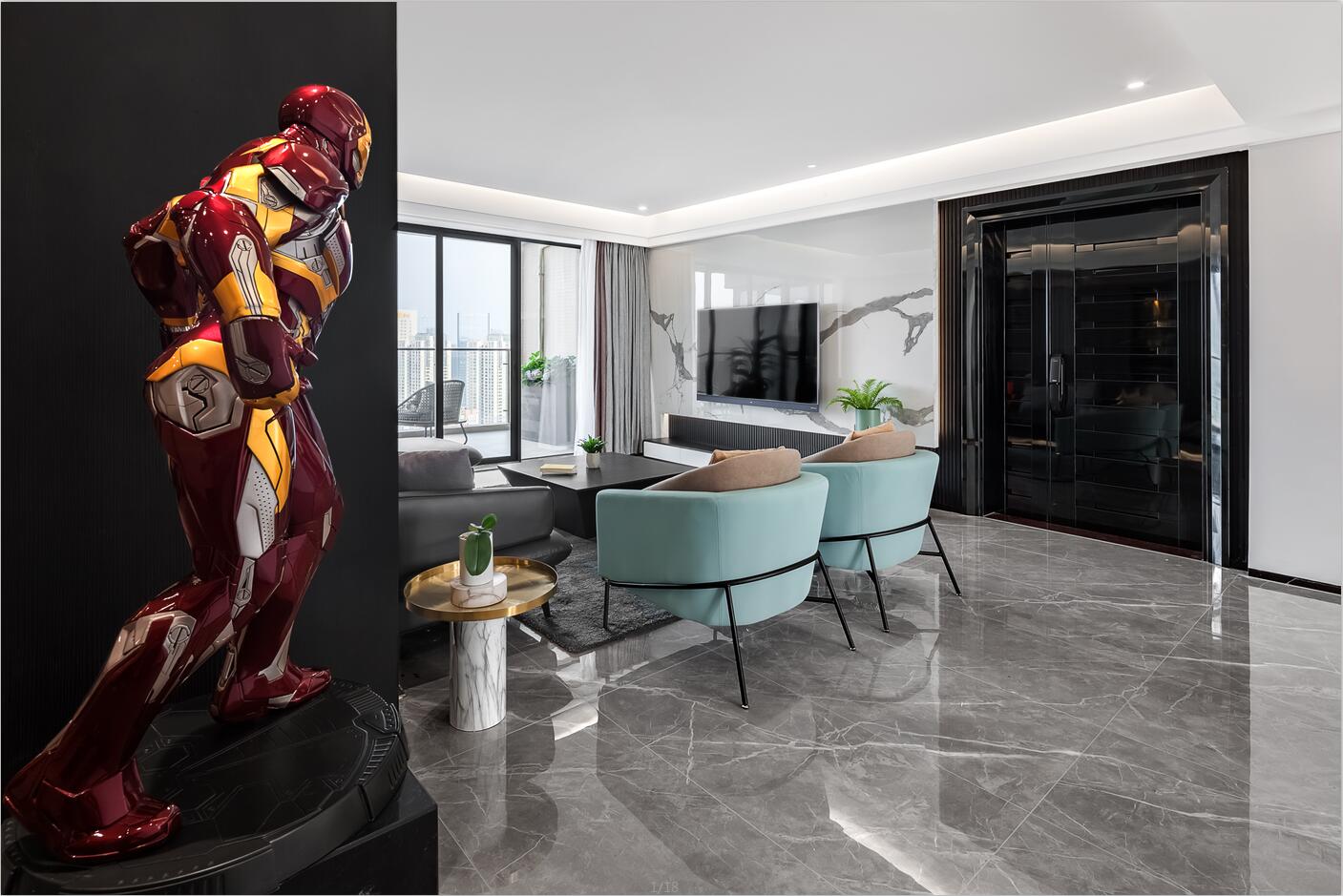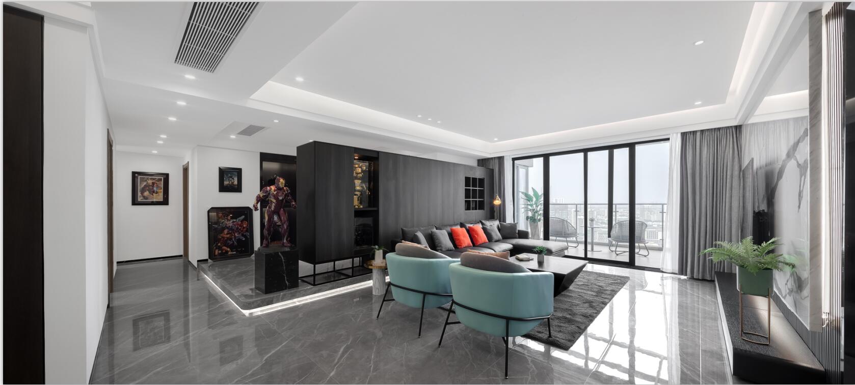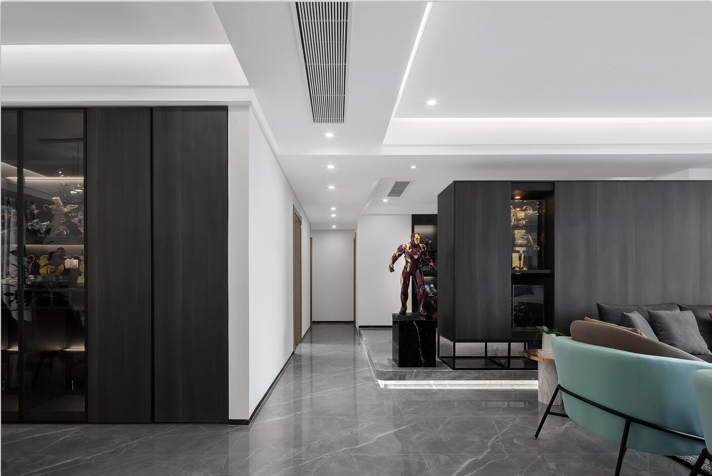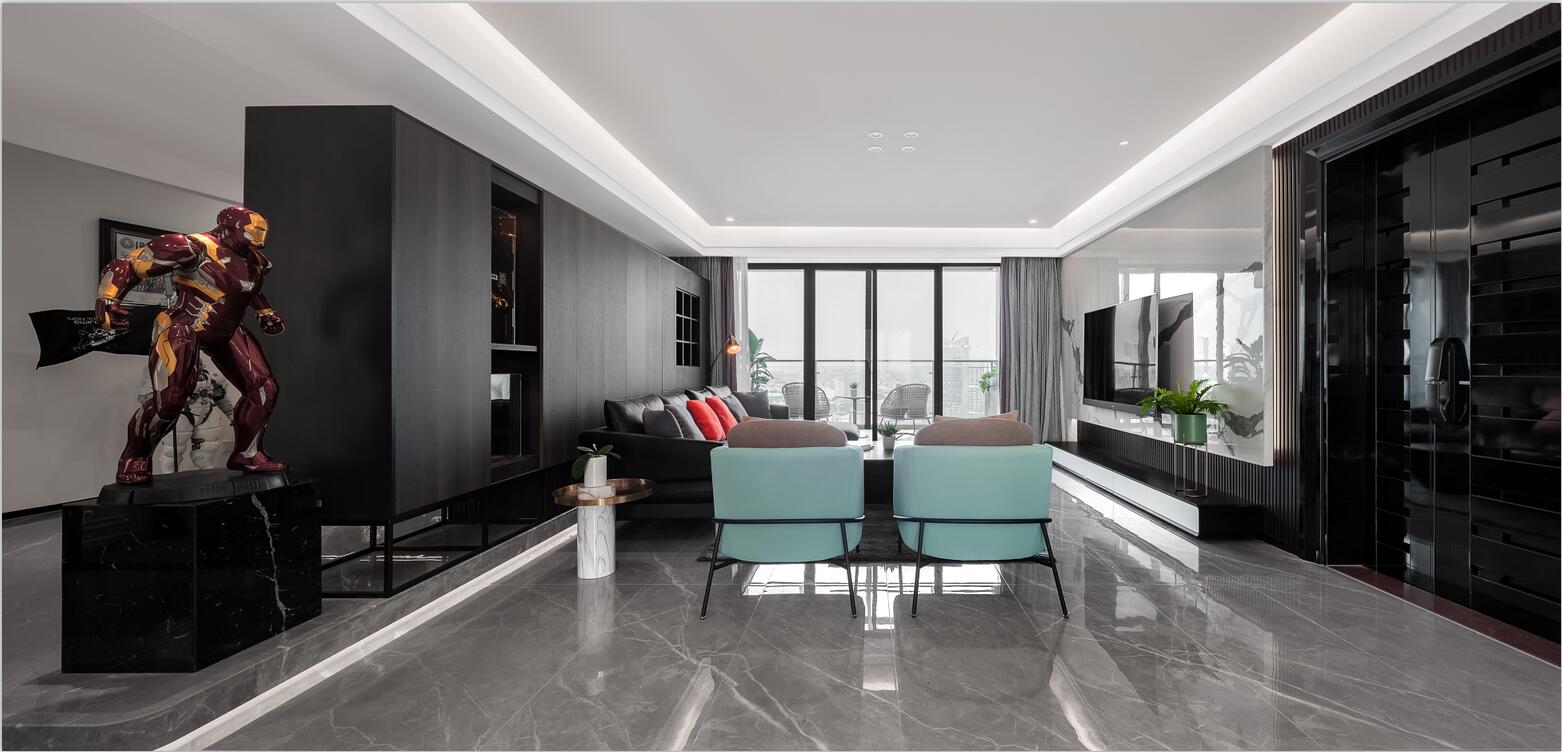 業主是一名帥氣的飛機師,同時是手辦發燒友,平時收藏了很多漫威、日本等人物場景模型精品。所以,他希望新房能為這些手辦模型提供一個展示的舞臺,既能將自己的愛好融入生活,又能保持空間的舒適感與實用度。