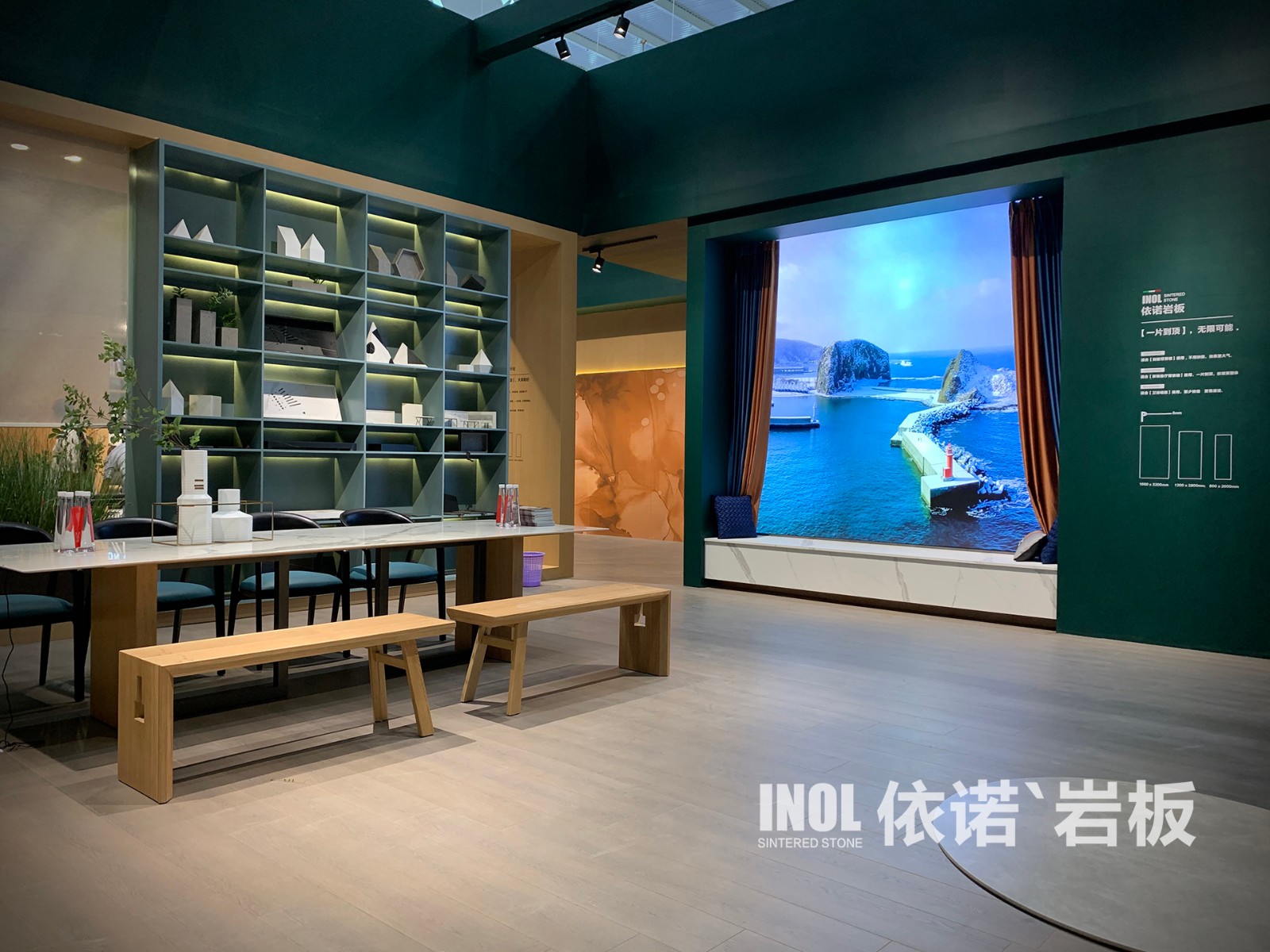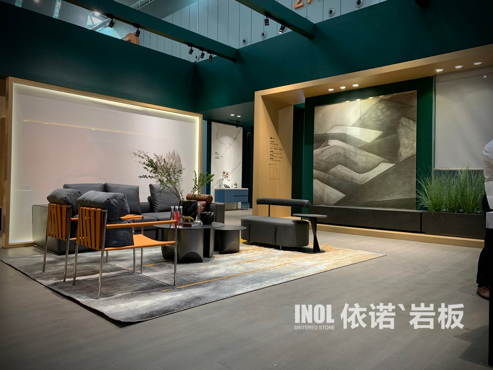 7月24日,隨著潭州展的閉幕,【依諾巖板】的2020年首秀也正式收官。本次展會,依諾從家居生活化的角度出發,以【一片到頂】產品+【巖板全案落地】場景的展示方式,為現場觀眾呈現了【依諾巖板】的家居場景多元化應用,進一步突顯【依諾巖板】在空間設計中的表現力,吸引了眾多領導、嘉賓、設計師等到場打卡。