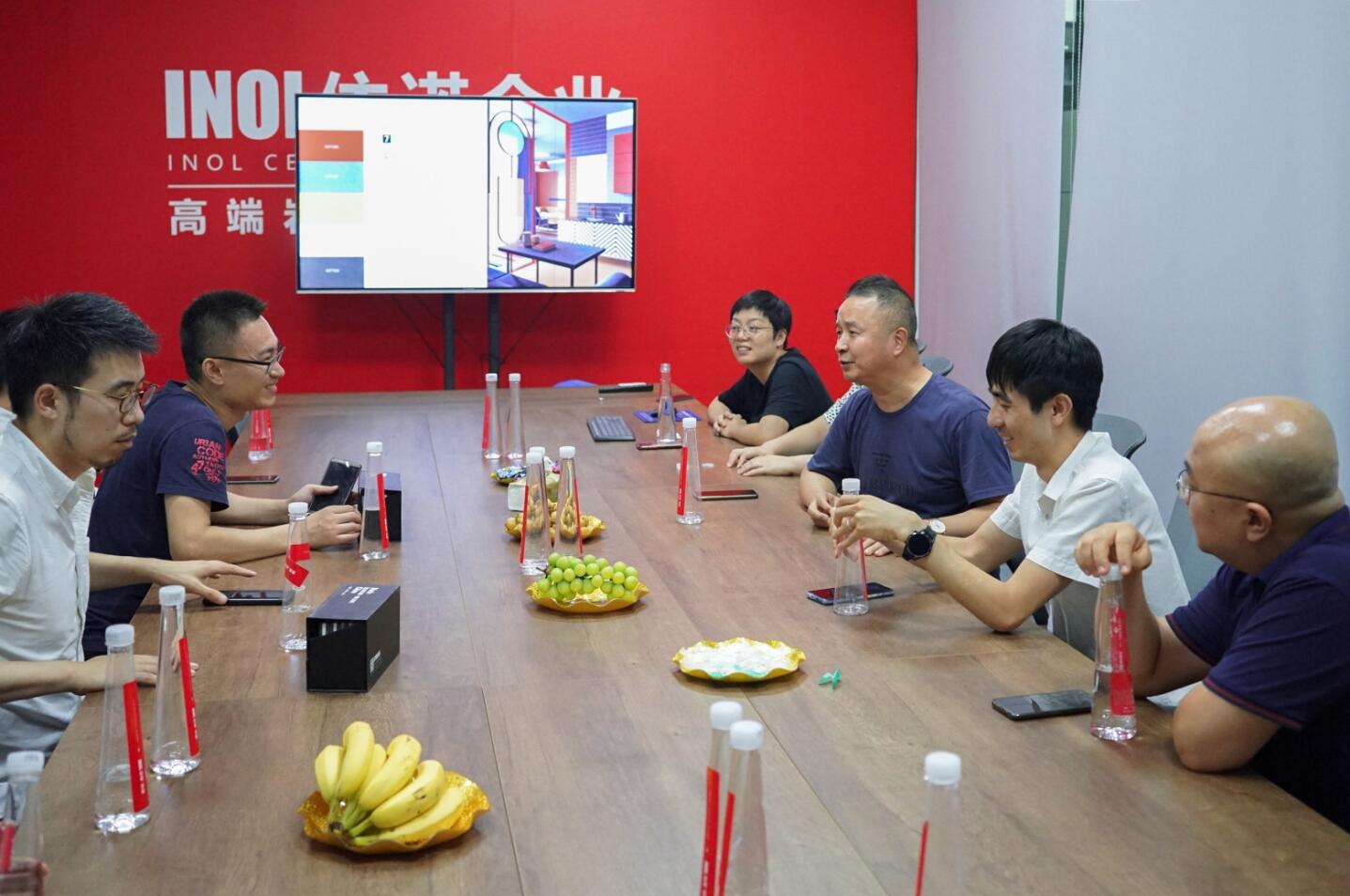 來自貝殼找房旗下家居服務平臺「被窩家裝」的十多位精英設計師蒞臨依諾瓷磚品牌佛山總部展廳參觀交流,依諾企業瓷磚事業部總經理戴富林、依諾企業渠道總監孫明浩等企業領導熱情接待了他們,表達了誠摯的歡迎。