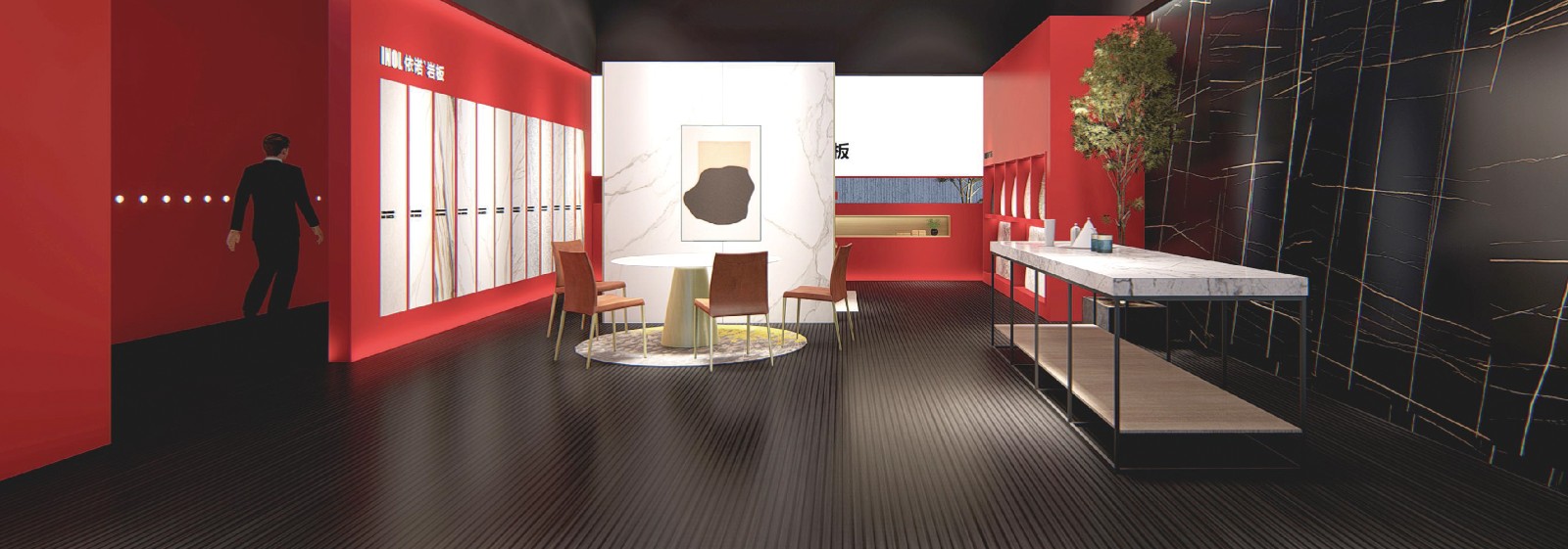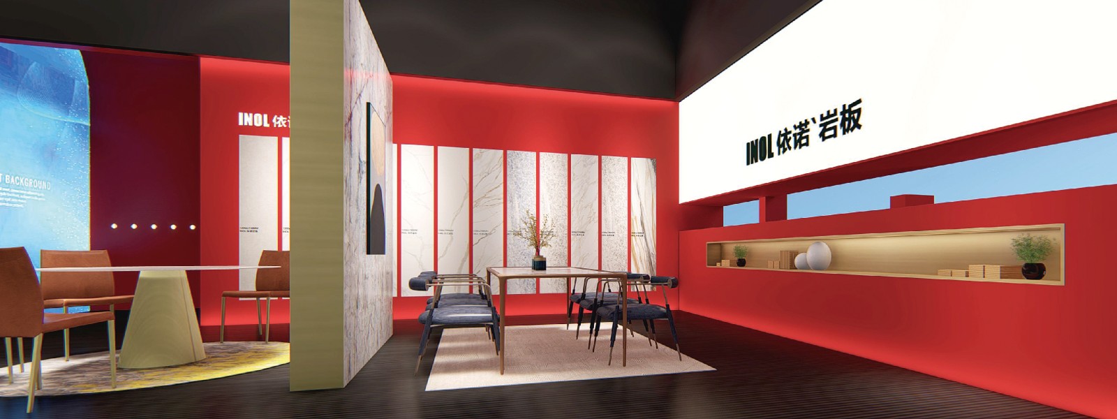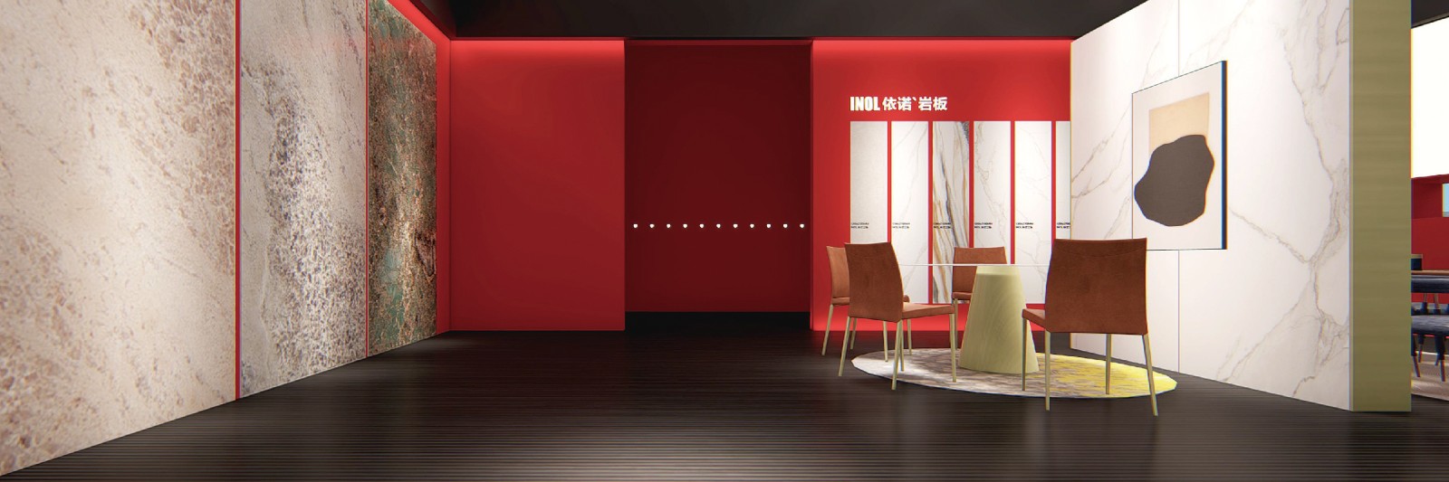 依諾巖板展位14號館A05B為現代(dai)簡奢(she)風(feng)格(ge),以(yi)極具象征(zheng)性的「中國(guo)(guo)紅」為主色調,為觀眾們(men)展示國(guo)(guo)際(ji)化的中國(guo)(guo)現代(dai)設計力量(liang)。