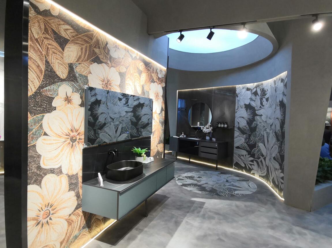 【依諾巖板】展位為現代簡約的圍合式設計,為參觀者帶來更純粹的沉浸式感官體驗與互動參與。