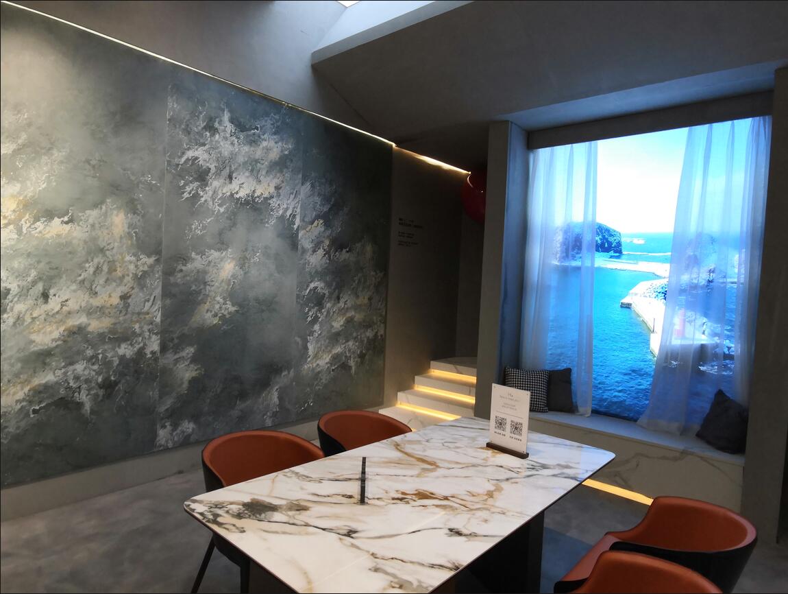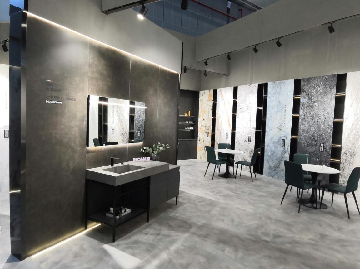 展位內部則貫徹“所見即所得”的家居空間理念,以巖板背景墻、巖板定制家具等產品綜合呈現的場景方式,體現了【依諾巖板】更全面、更豐富的產品體系。展館內依諾大巖板盛大亮相,巖板背景墻展示大氣、時尚。