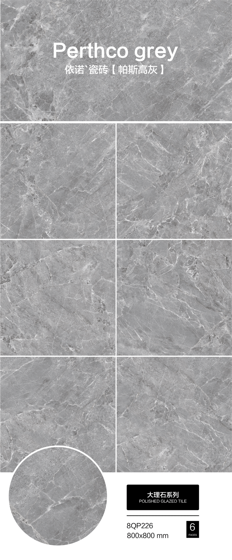 △公衛干區墻面:依諾通體大理石【格蘭特灰8DT132】