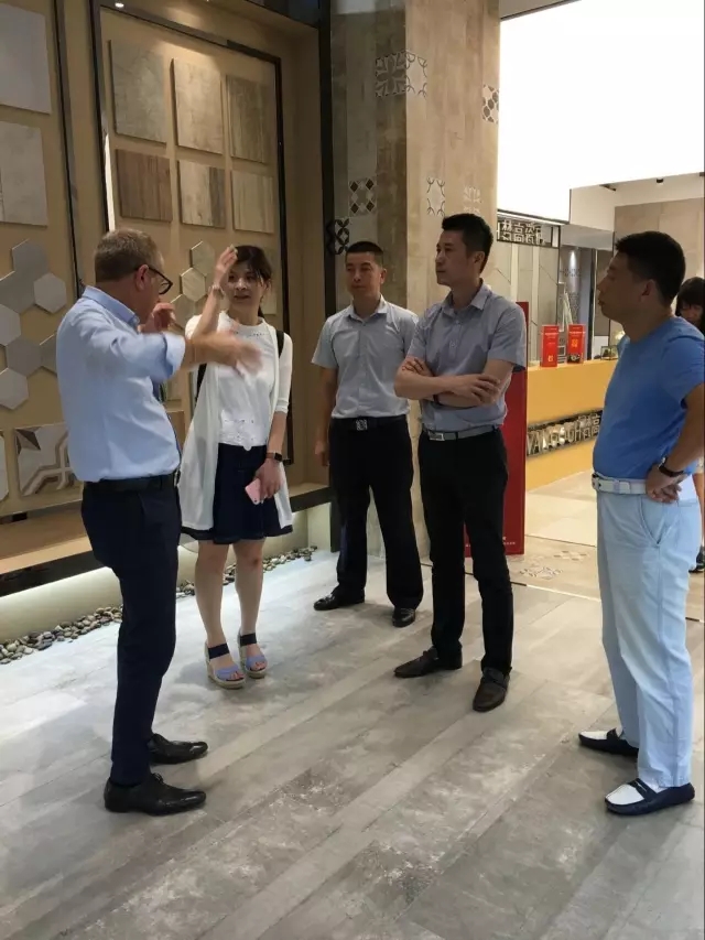 意大利·史(shi)帝華夫設計公司CEO Mr .Maurizio Cavagnari一(yi)行(xing)參觀(guan)依諾瓷磚并(bing)深入交流(liu)