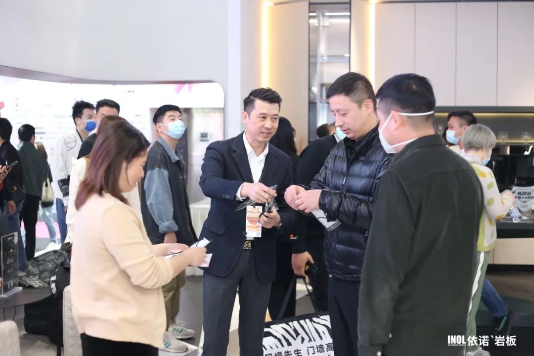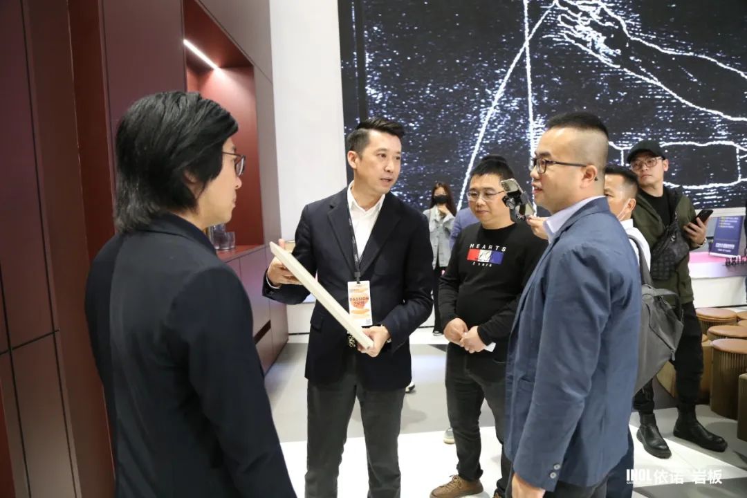 ▽依諾巖板BOSS及工(gong)作人(ren)員為觀眾(zhong)講解展館理念和產(chan)品