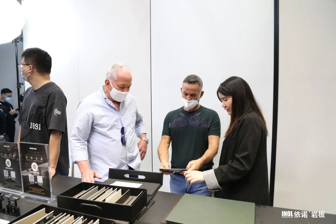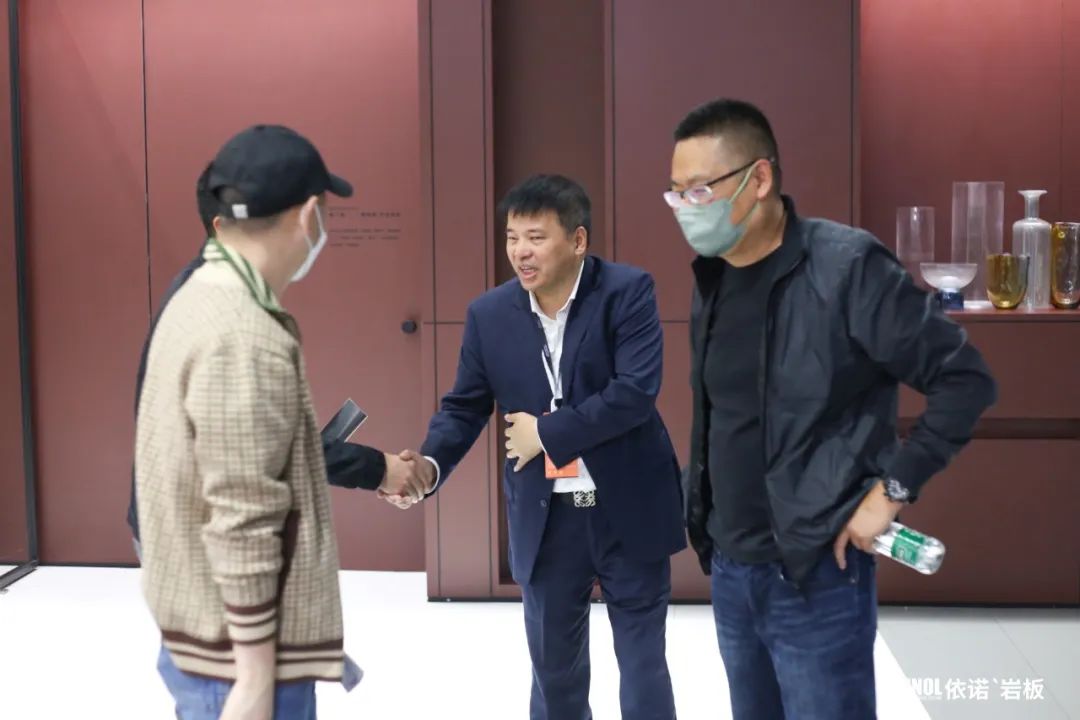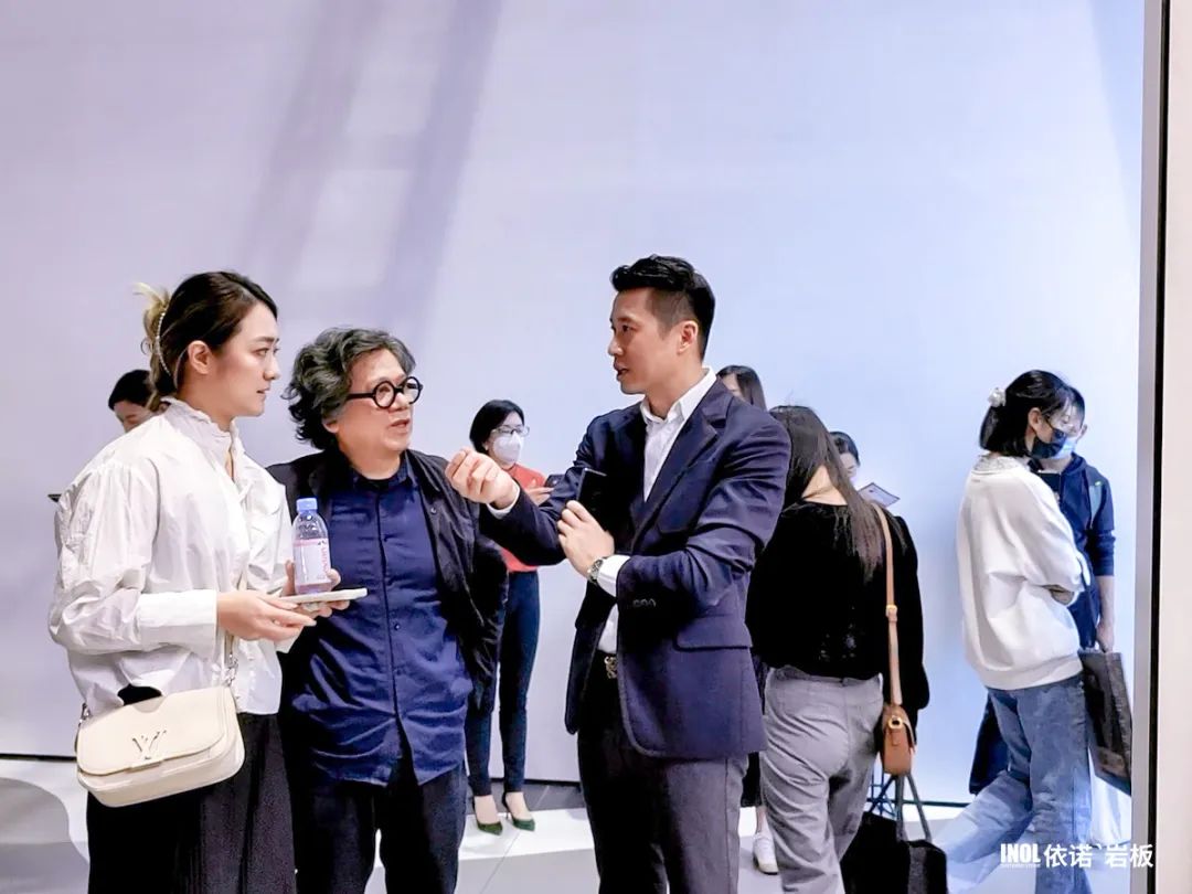 ▽左2:集美組(zu)創始人、著名設計師、當代(dai)藝(yi)術家林學明,左3:依(yi)諾企業副總裁、巖板材料中(zhong)心總經理田慶忠
