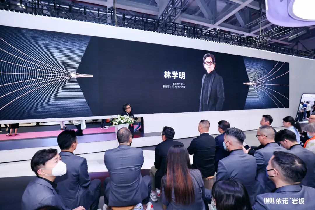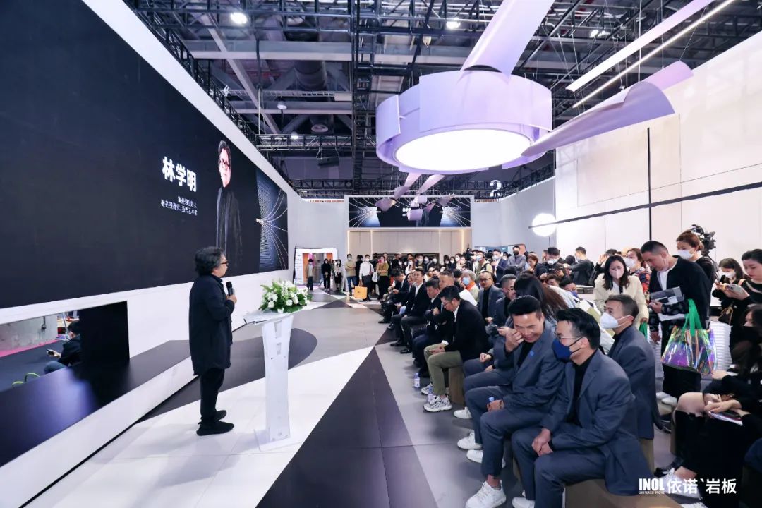 為了給觀眾們帶來足夠驚喜的體驗,本次設計周依諾巖板攜手集美組創始人、著名設計師、當代藝術家林學明,聯合打造了“數理之美”主題展館。開展首日,林學明老師親臨現場,分享這次展館的設計思考和心得,并為廣大觀眾簽發了“尺度之美”紀念品。