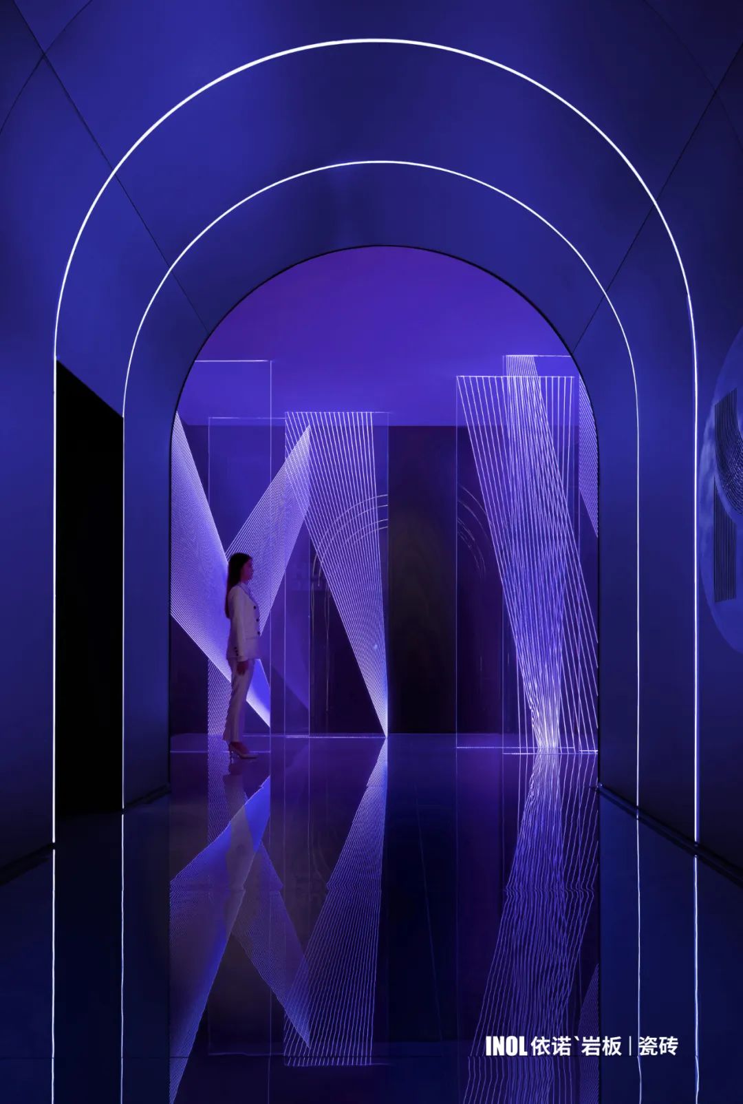 智能體驗中心的展廳入口(kou)以(yi)“射線”為創意點,大(da)量使用弧線光(guang)帶和直線光(guang)帶,仿佛打通了虛(xu)擬世界與現實時(shi)空(kong)的入口(kou),為充滿科(ke)技(ji)感的智能生活拉(la)開序幕。