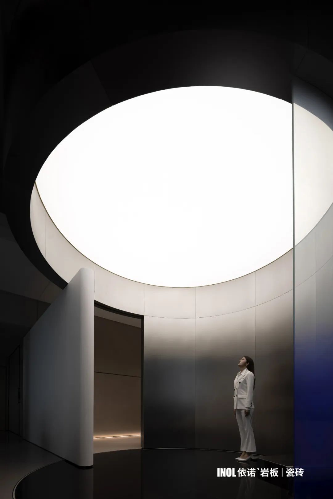 以拱形(xing)結構塑(su)造的(de)智能(neng)產(chan)品(pin)陳(chen)列區,不僅帶(dai)來更符合展示功能(neng)的(de)空(kong)間尺度,還通過結構秩序、材料質感及光影變幻帶(dai)來強(qiang)烈的(de)現(xian)代(dai)感氛圍。