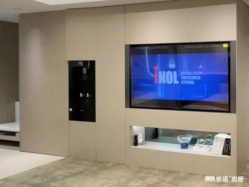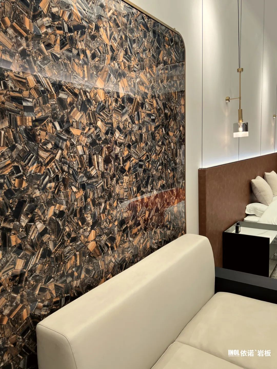 “墻布”肌理巖板(ban)(ban)(ban)作護(hu)墻板(ban)(ban)(ban),質感獨特,“虎眼”奢石巖板(ban)(ban)(ban)作局部點綴(zhui),風格【統一(yi)】的同時,又不失(shi)奢美的氣質。