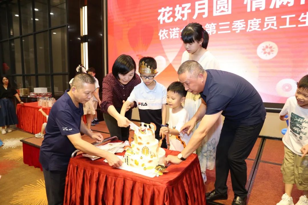 依(yi)諾企業(ye)第(di)三季度員工生(sheng)日會也在(zai)中秋晚(wan)宴上(shang)同步舉(ju)辦(ban),企業(ye)高層領(ling)導為壽星們送上(shang)生(sheng)日禮物與祝福,感恩他們的一路相伴。