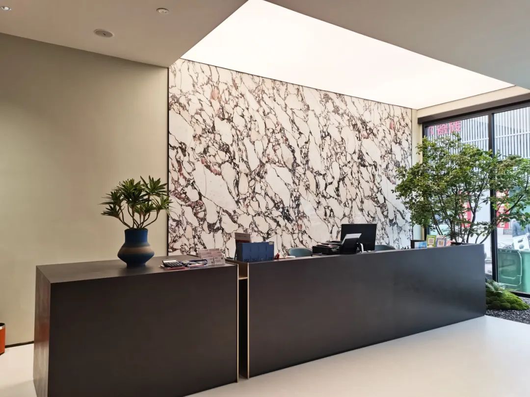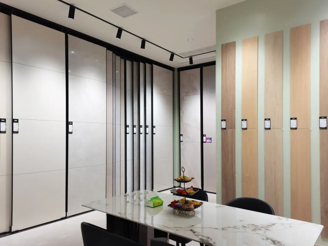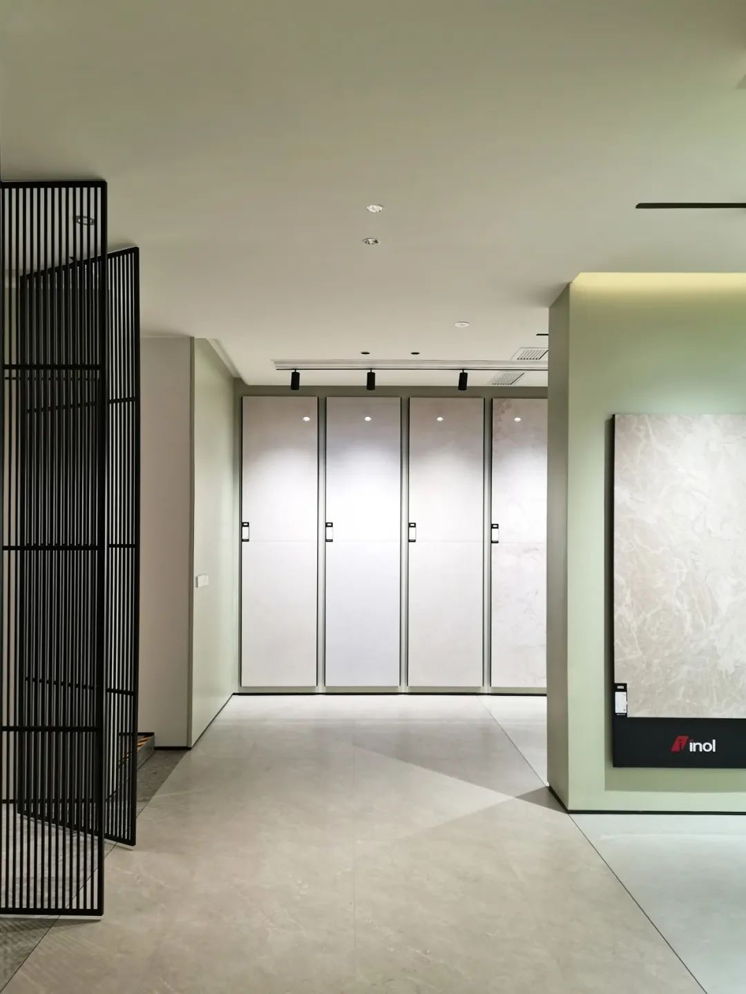 選(xuan)材區(qu)通過有序(xu)的排(pai)列,將店內巖板/瓷磚最大化展示(shi),讓消費(fei)者的視覺和(he)體驗(yan)更加聚焦在(zai)產(chan)品(pin)細節(jie)上。