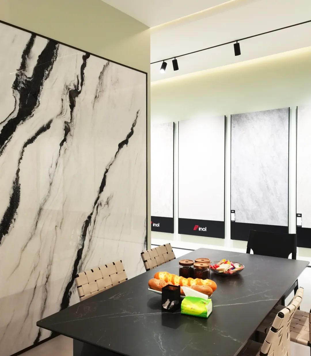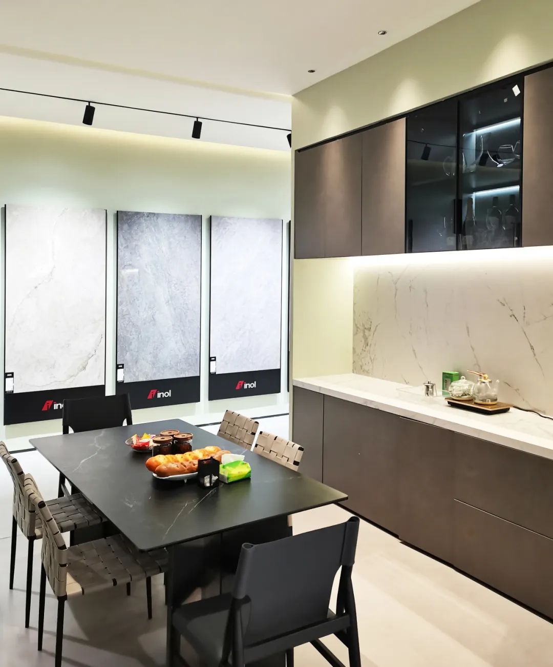 在家(jia)(jia)的情(qing)境化呈現方(fang)(fang)面,【依諾·鄭州店(dian)】利用面積優勢,通過“一體(ti)化”的方(fang)(fang)式(shi)打造【全(quan)案巖板】展示區,結合自然舒適(shi)的材質與色調,予人沉浸(jin)式(shi)的居(ju)家(jia)(jia)互動體(ti)驗。