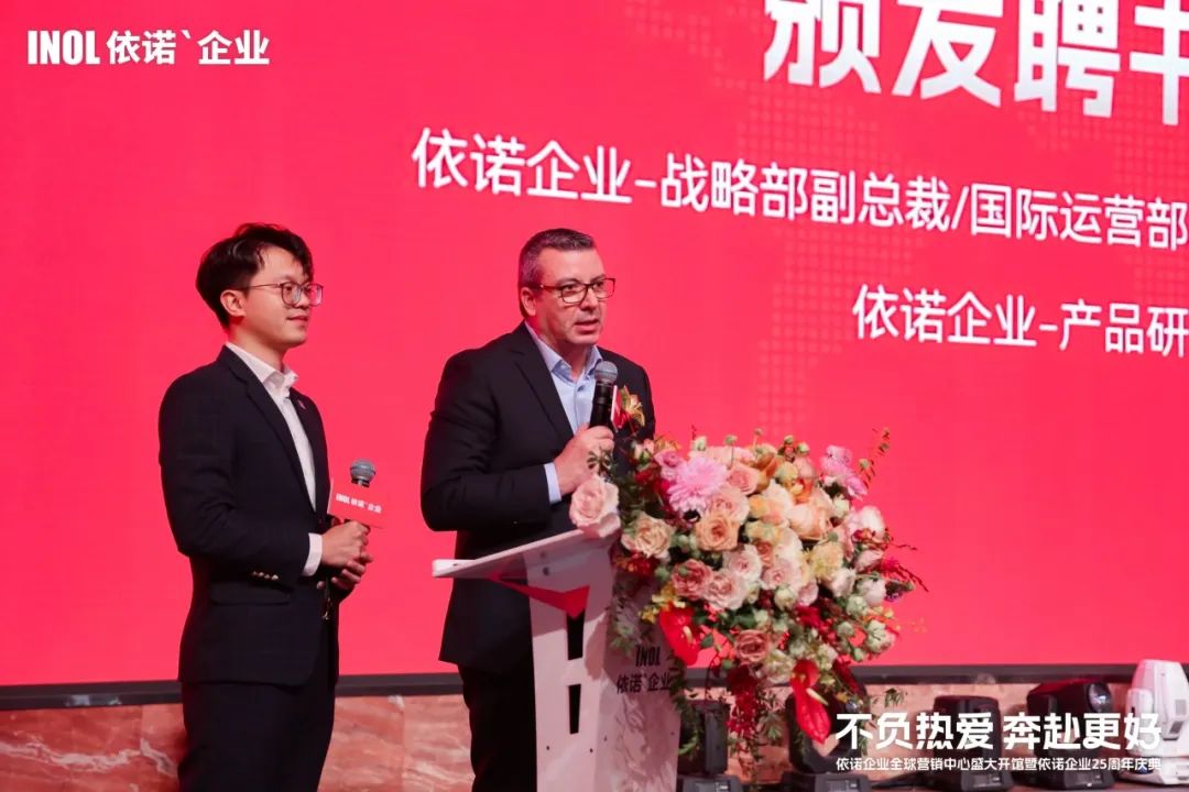 為了從頂層設計上提升產品力,通過拓展海外市場,實現更廣泛的影響力和業務延伸,依諾組建了「國際化人才隊伍」,并在年會現場舉行了聘書頒發儀式。