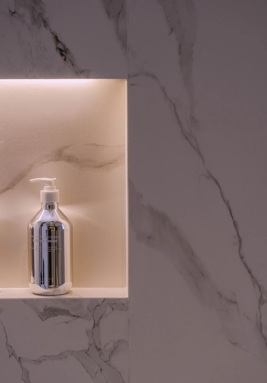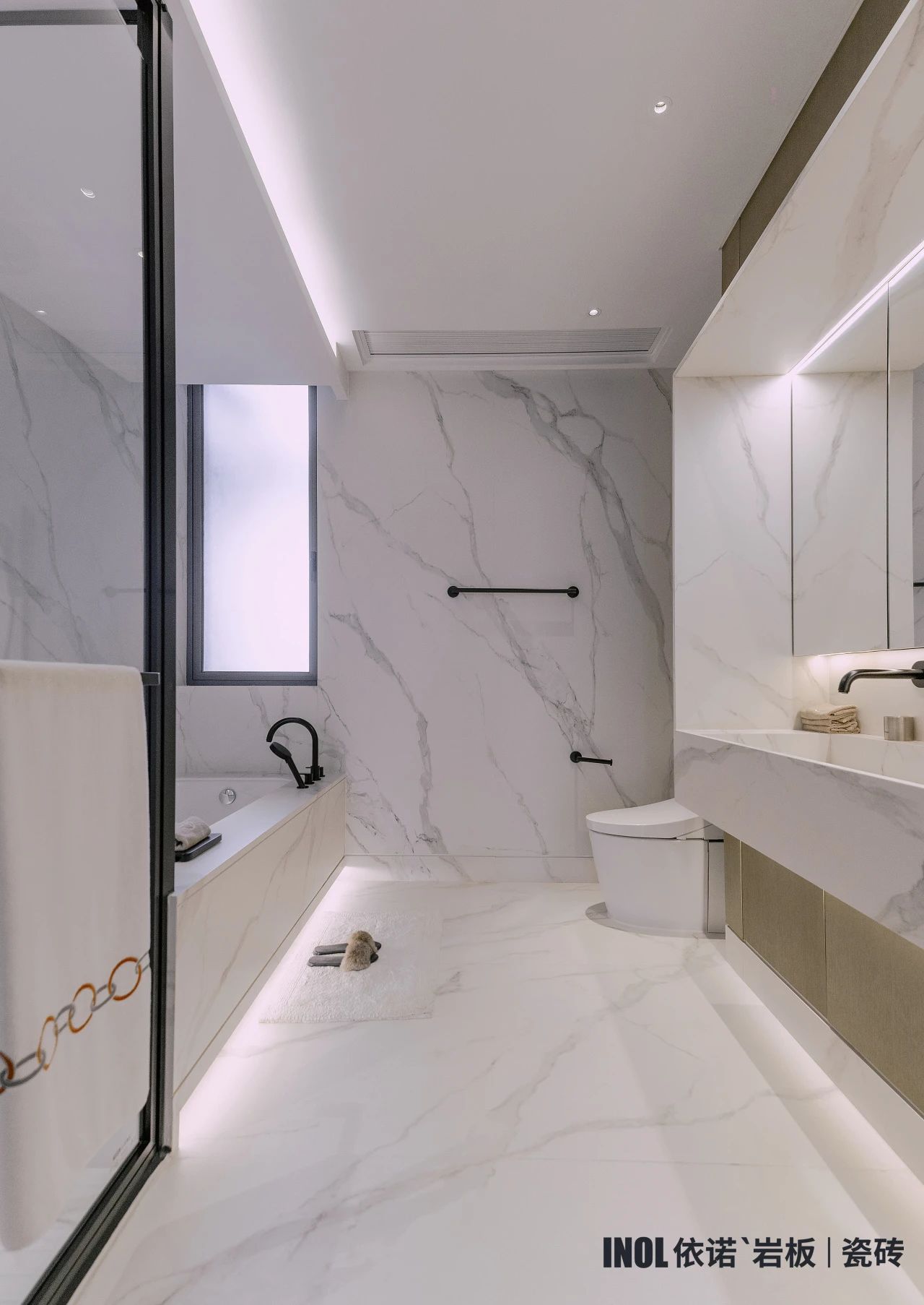 依諾巖板打造的衛浴空間 從墻面到地面 從洗手臺到浴缸 人性化細節里 藏著生活的質感