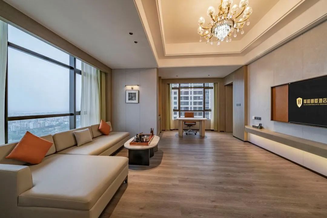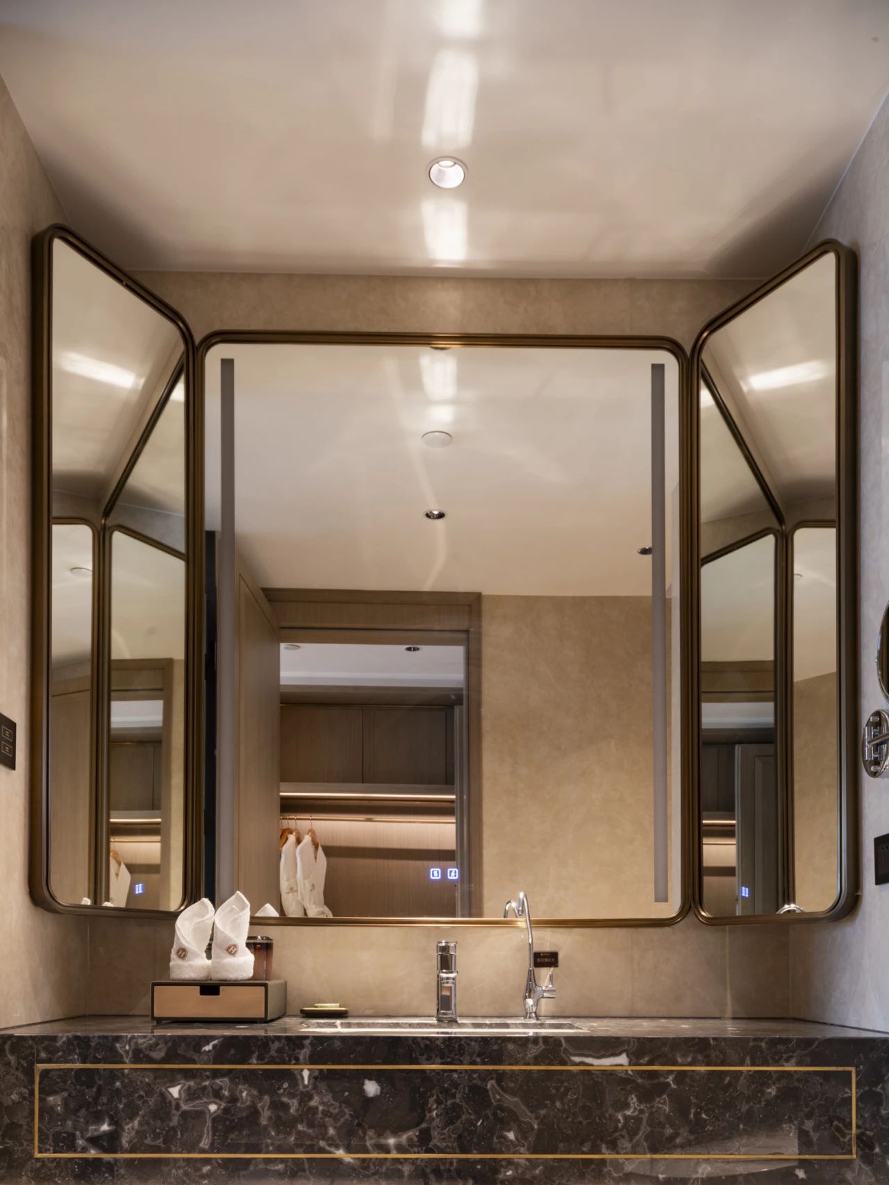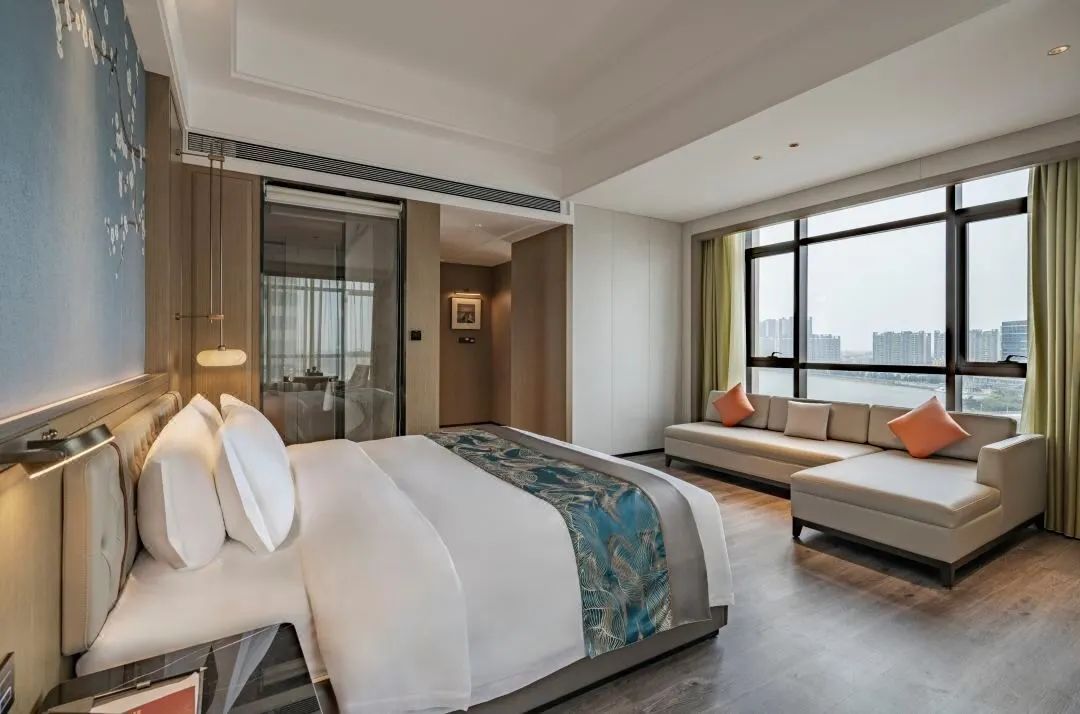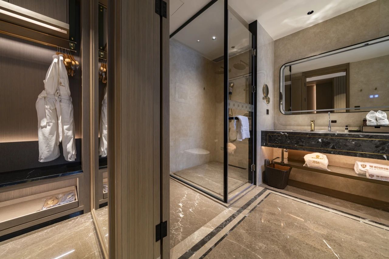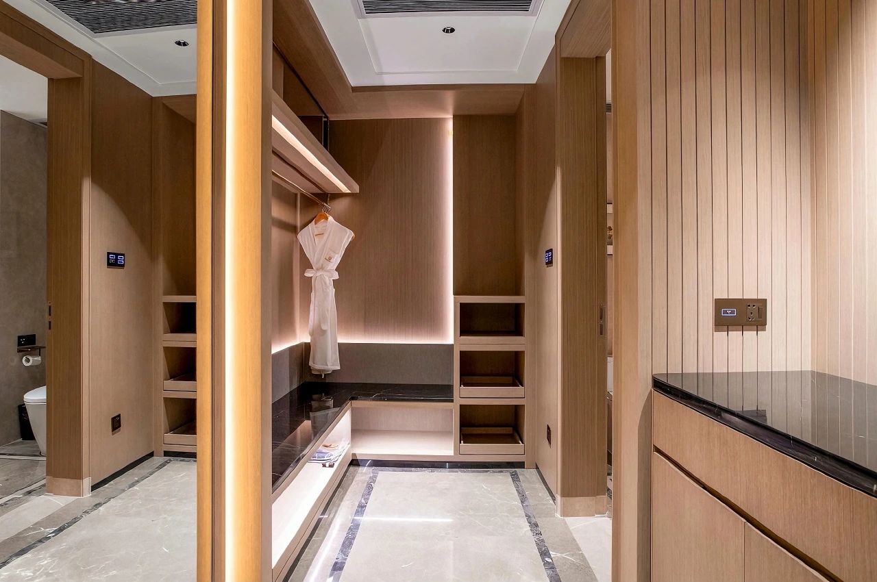 酒店客房溫馨舒雅 延續華和的奢華調性 依諾巖(yan)板打造的衛浴空間 讓人(ren)于寧靜(jing)里保持心境中(zhong)的悠然之(zhi)氣