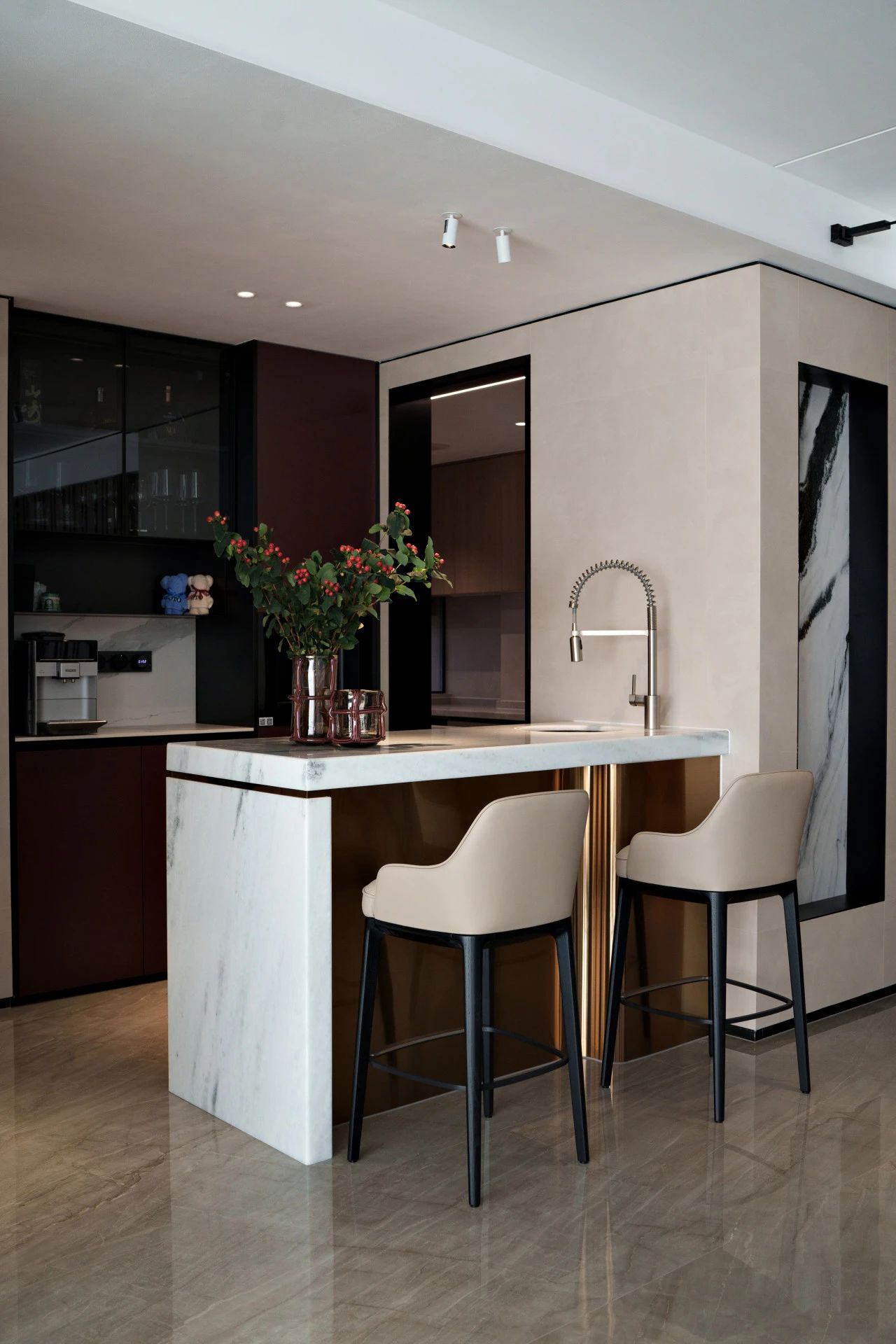 本期INOLCASE位于廣東佛山·保利天悅,230㎡奢闊大平層全屋瓷磚搭配案例,呈現高雅與簡約的生活藝術。家作為一個標志,是表達居者藝術審美與生活態度的場所。