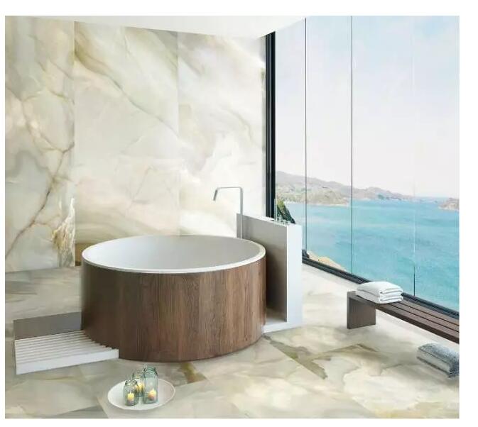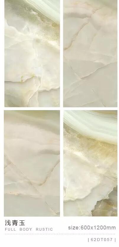 通體大理石瓷磚的優勢更逼真的外觀質感:坯體混色或布料、噴墨印花以及絲網效果釉的三項結合,使得通體大理石瓷磚花色由表及里,更加接近天然石材的厚重質感。更完美的用戶體驗:* 拉槽、倒角、磨邊樣樣經得起考驗;* 一石N面,應用效果更加自然;* 采用進口耐磨釉,耐磨度更高。通體大理石磚 PK 傳統產品通體大理石瓷磚PK天然大理石硬度高,表面更耐磨無輻射,使用更安心無色差,應用更美觀通體大理石瓷磚PK傳統仿大理石瓷磚表里如一,二次加工更便利內在有料,質感更加真實厚重4通體大理石瓷磚的技術突破* 引進意大利天工法拉利8通道噴碼印花設備,結合西班牙意達家墨水,產品表面花色更真 實細膩;* 新型干法混色著色系統,有效降低生產難度,控制生產成本。* 坯體混色布料與噴碼印花、絲網印花三項技術結合,創造1+1+1大于3的產品效果。5通體大理石磚的適用場所* 通體大理石磚具有表里如一的特性,因此適用于各種需要倒邊、拉槽等二次加工鋪貼的洗手間墻面,背景墻、幕墻等墻面裝飾;* 通體大理石磚一石N面,質感厚重,特別適合空間較大的住宅或高檔商用空間,如別墅、高端酒店、餐廳、會所等;* 通體大理石磚硬度較高,同樣適用于人流量較大的公共場所,如商場等。