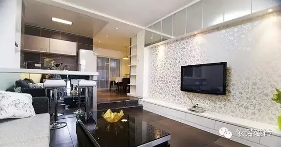 黑與白的搭配,總讓人感覺到不一樣的驚艷。黑色的瓷磚比較耐臟,同時黑白搭配讓小客廳的格調提升了不少。