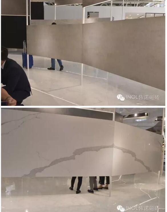 今年不少國外企業都把大板作為展示重點,產品規格也是1X3M,800X1800MM,600X1200MM,300X900MM為多,應用方面更傾向于將大規格產品加工為多種小規格混合鋪貼 ,例如150X1200MM,300X1200MM,600X1200MM等。