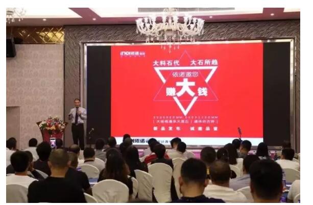 “全品類生產基地,產品無憂;高額專賣店補貼&扶持,建店無憂;高效的培訓體系,人員素質無憂;定向爆破營銷支持,賣貨無憂;8大配送倉儲中心,配送無憂;互聯網+360°引流平臺,推廣無憂…”依諾商學院副院長呂亮老師娓娓道來,從多個方面給在場的客戶呈現一個立體的實力派依諾,瞬間消除了大家的顧慮,增強了大家選擇依諾瓷磚的決心。